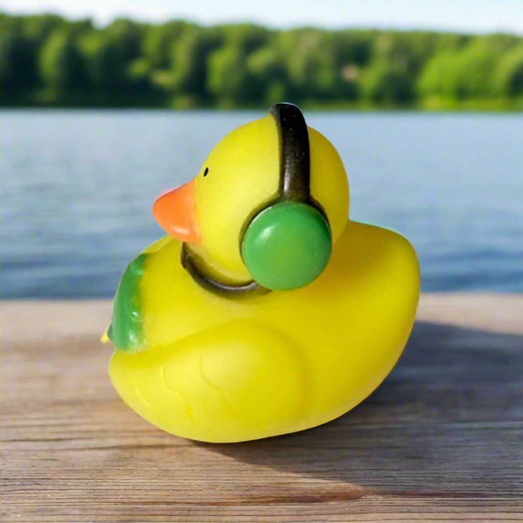 The Gamer Green Rubber Duck loves to play Mario Cart.