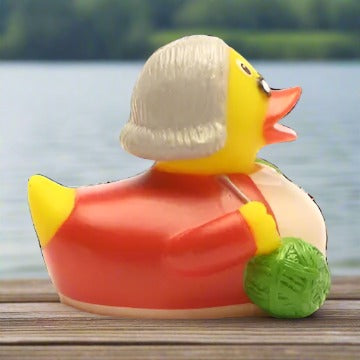 Introducing Grandma Rubber Duck - with her cozy sweater, tiny glasses perched just so, and a ball of yarn never far from reach, she is ready to knit her way into your heart, one stitch at a time.