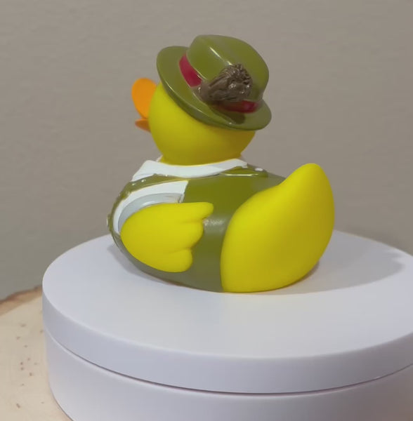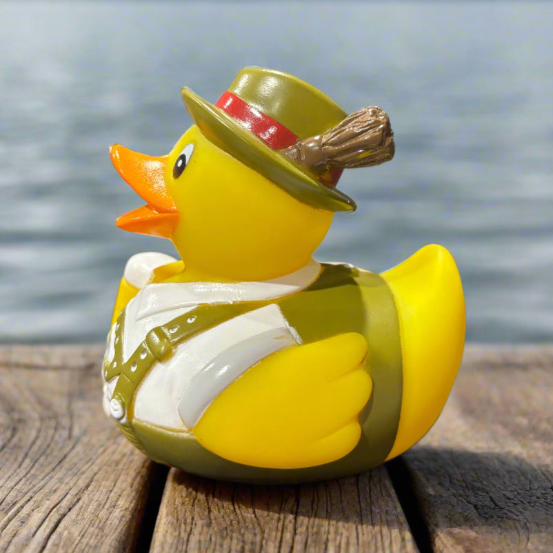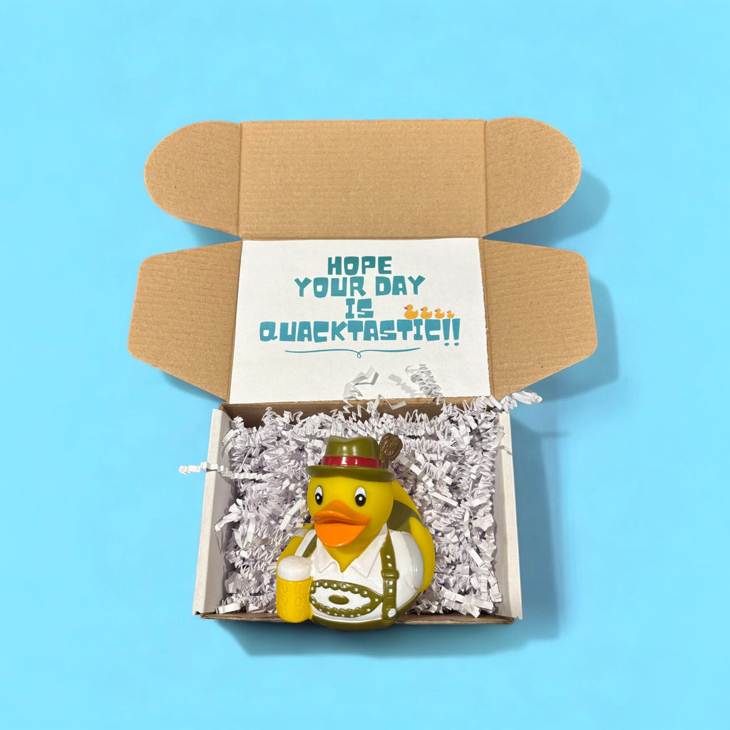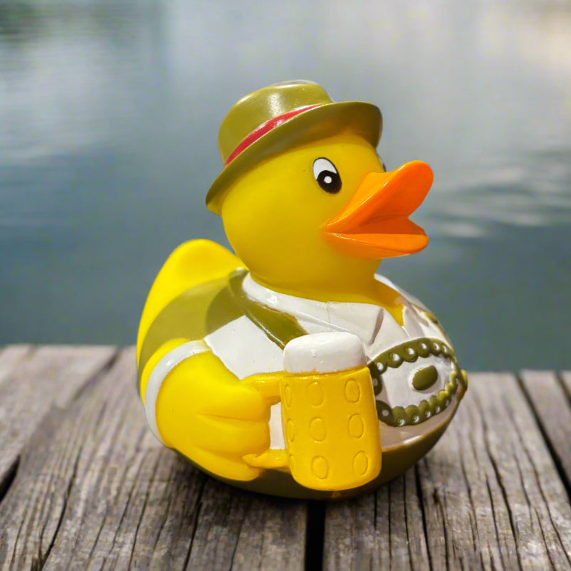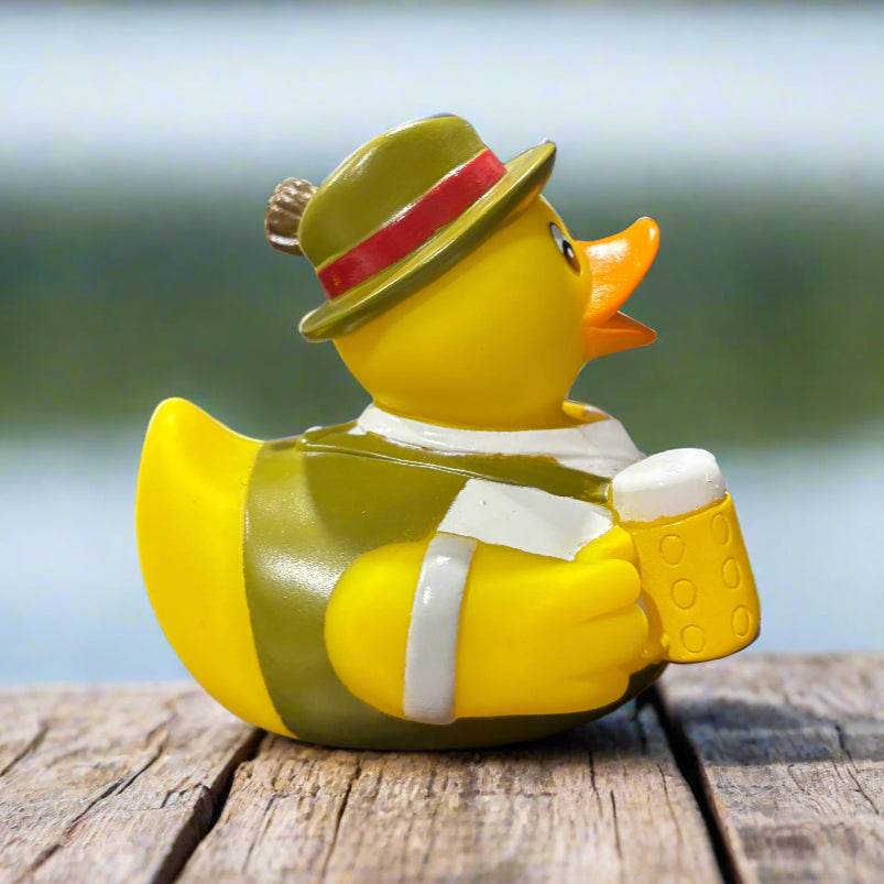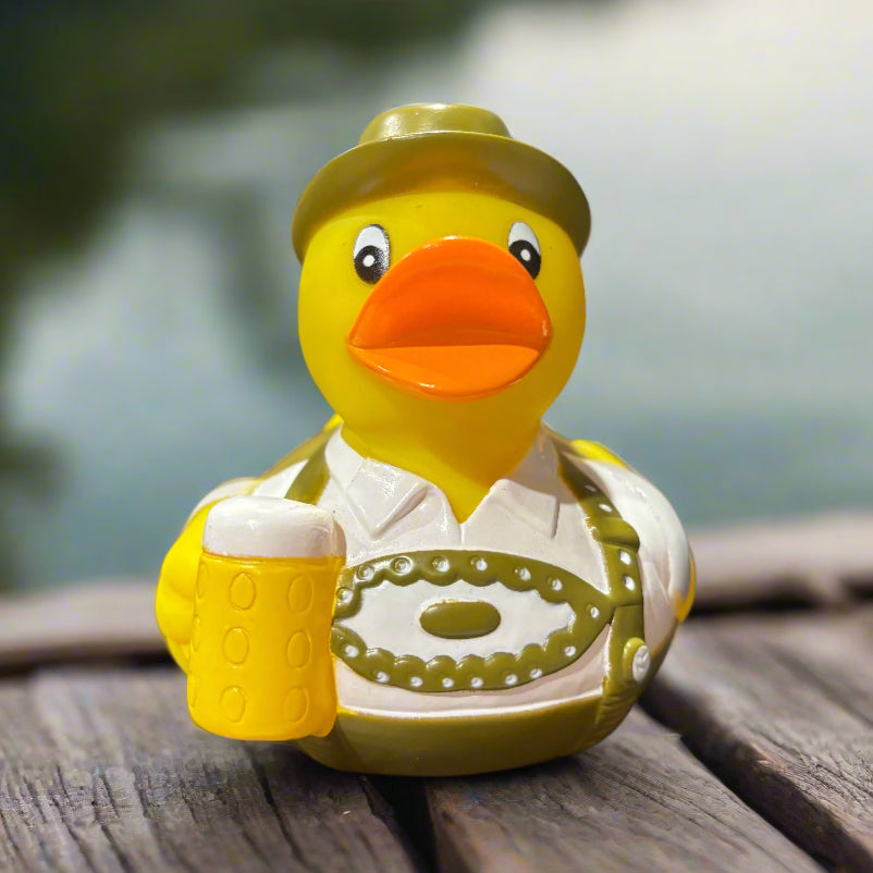Raise your stein! The Oktoberfest Rubber Duck is dressed to impress in classic lederhosen, a green feathered hat, and clutching a frothy beer mug. With its bright smile and charming details, it instantly brightens any room. Perfect for Oktoberfest lovers, this quirky duck makes a delightful gift for friends, family, or collectors who enjoy a bit of festive fun.