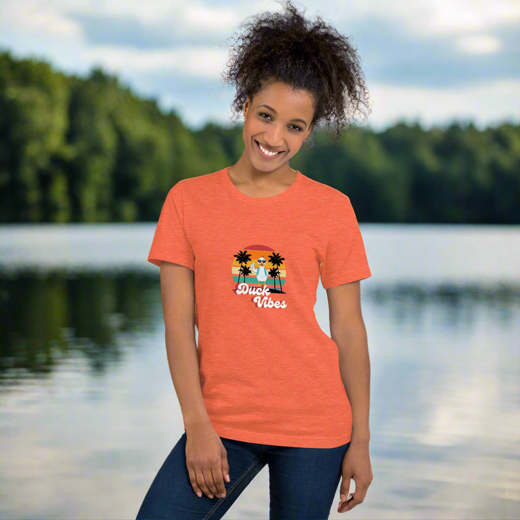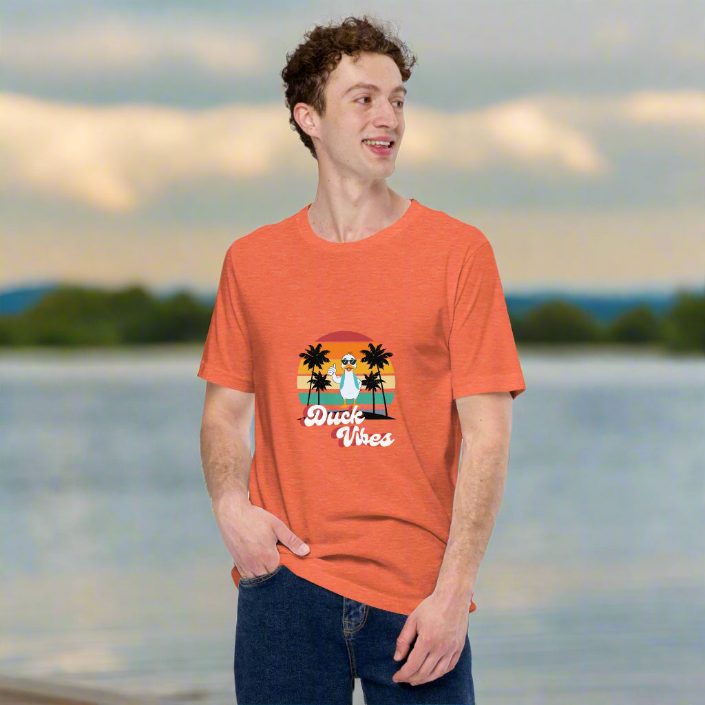 Don't just stand there like a sitting duck! Add the Duck Vibes Sunset T-shirt to your cart today and start spreading those good quacks!