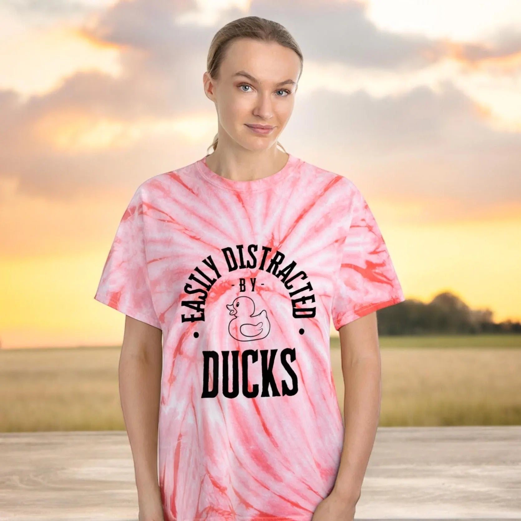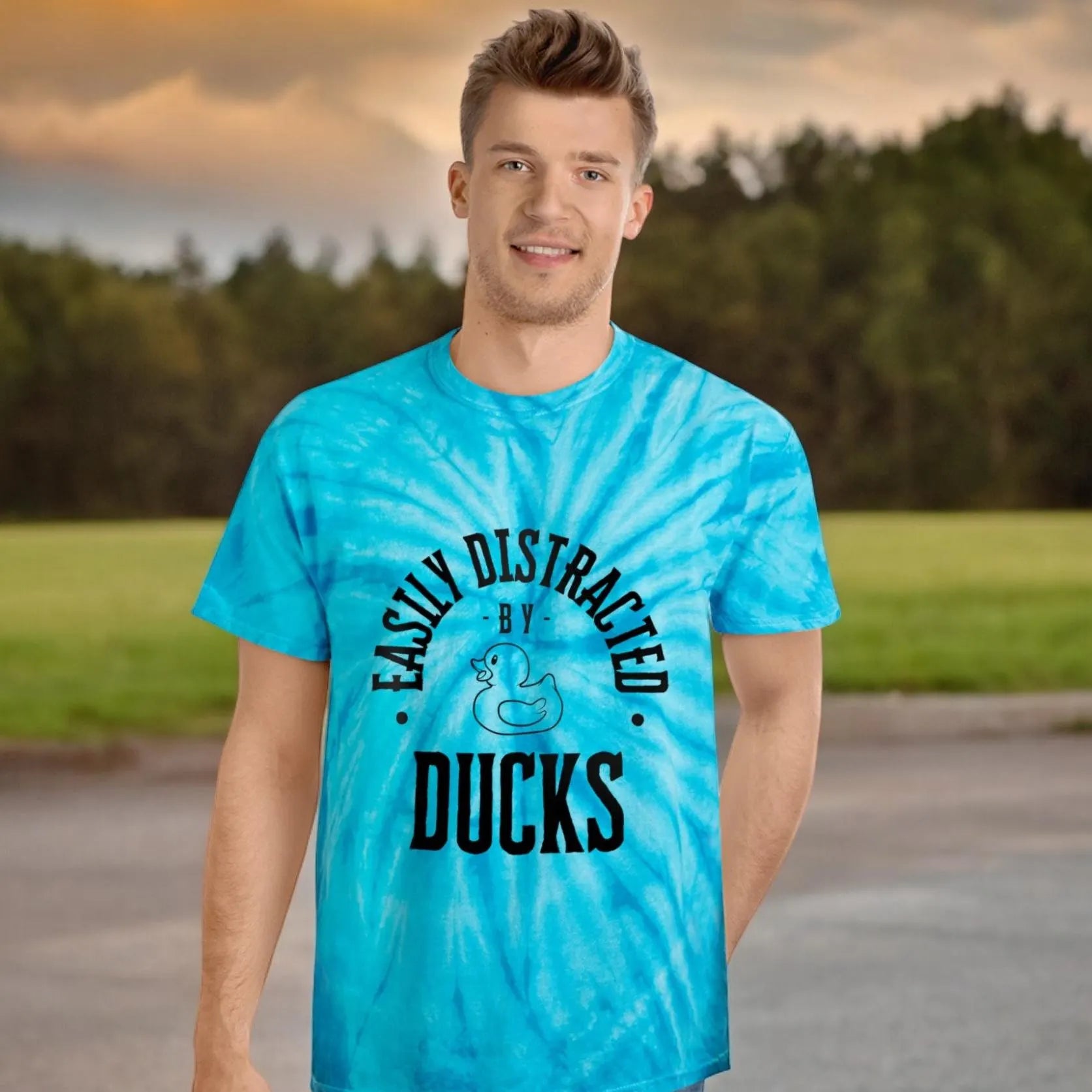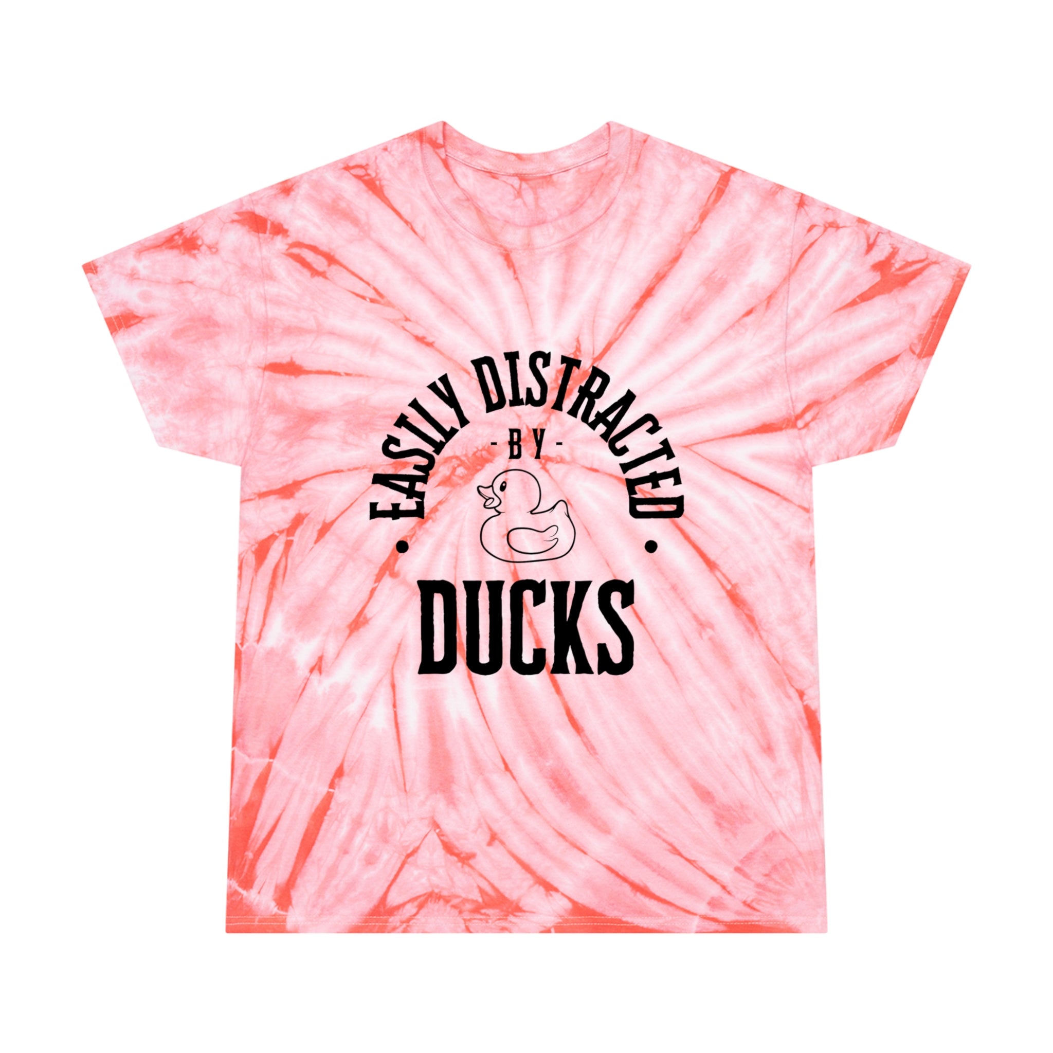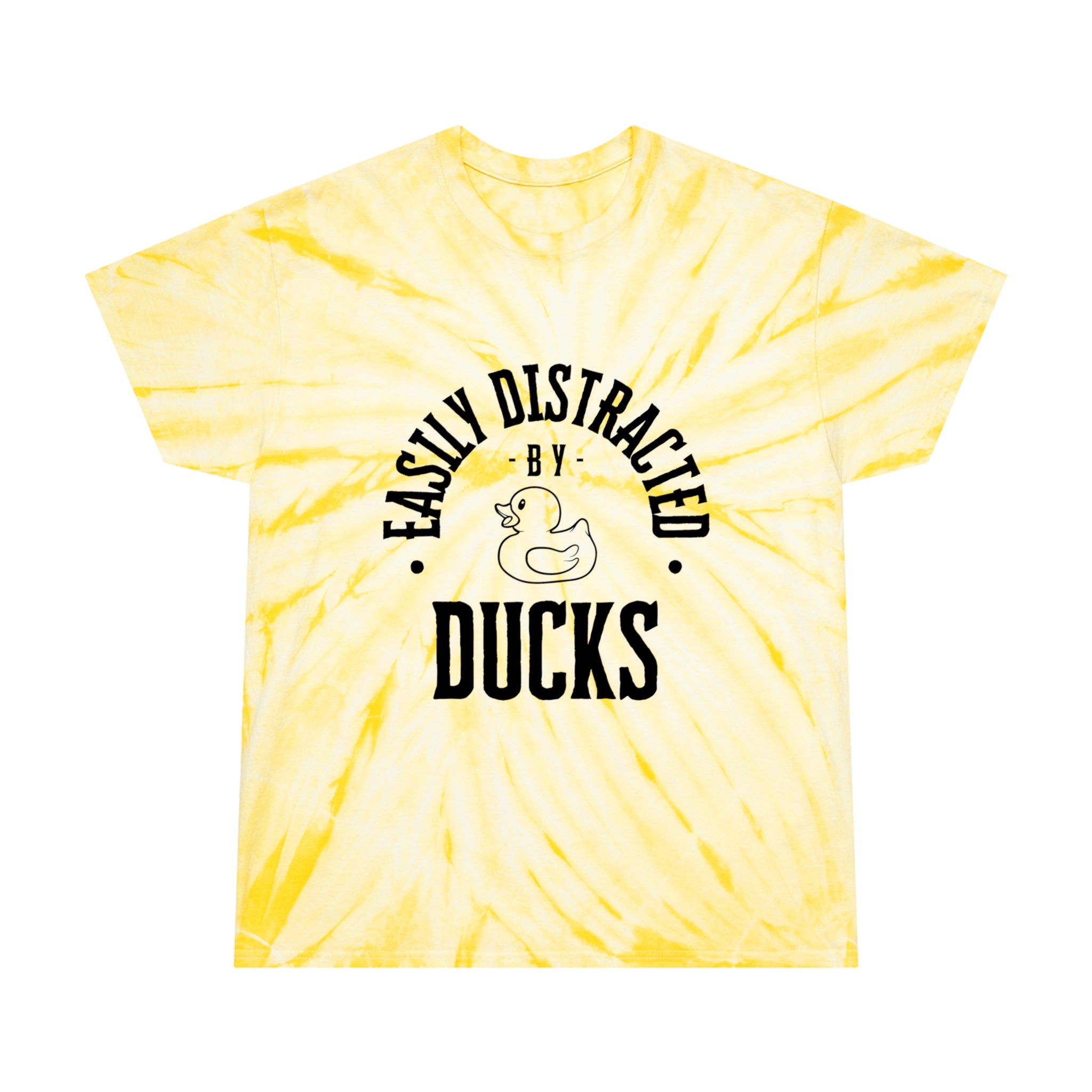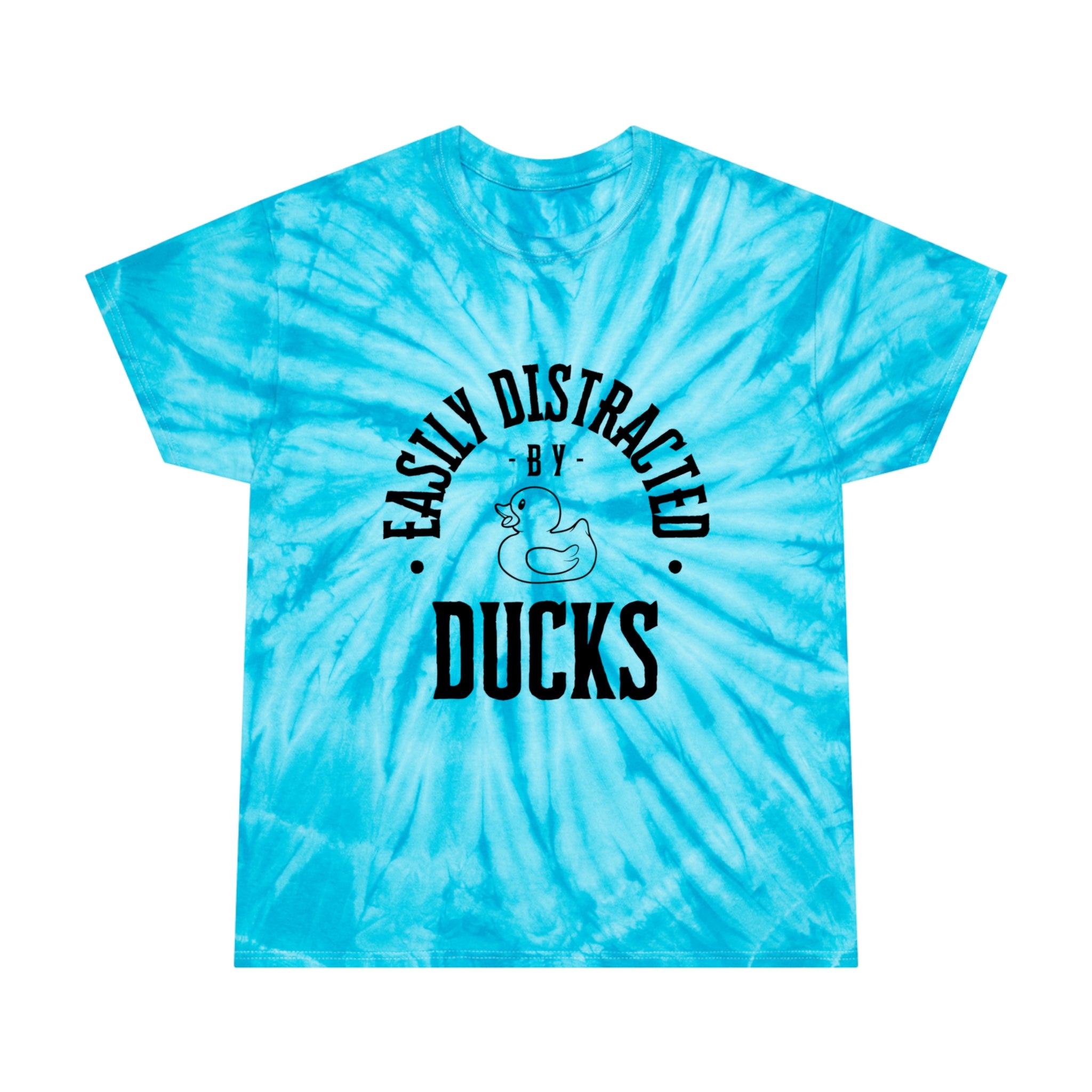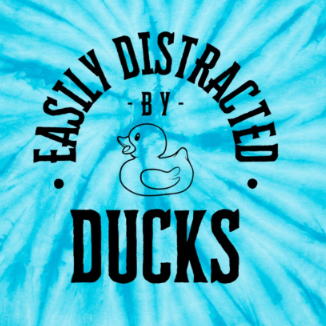 Wearing our Easily Distracted by Ducks tie-dye tee shirt will surely get your groovy mojo back. Are you constantly pulled into a trance by the mere sight of rubber ducks? Do you find yourself hypnotized by the quacks? Then, this is the perfect T-shirt for you!
