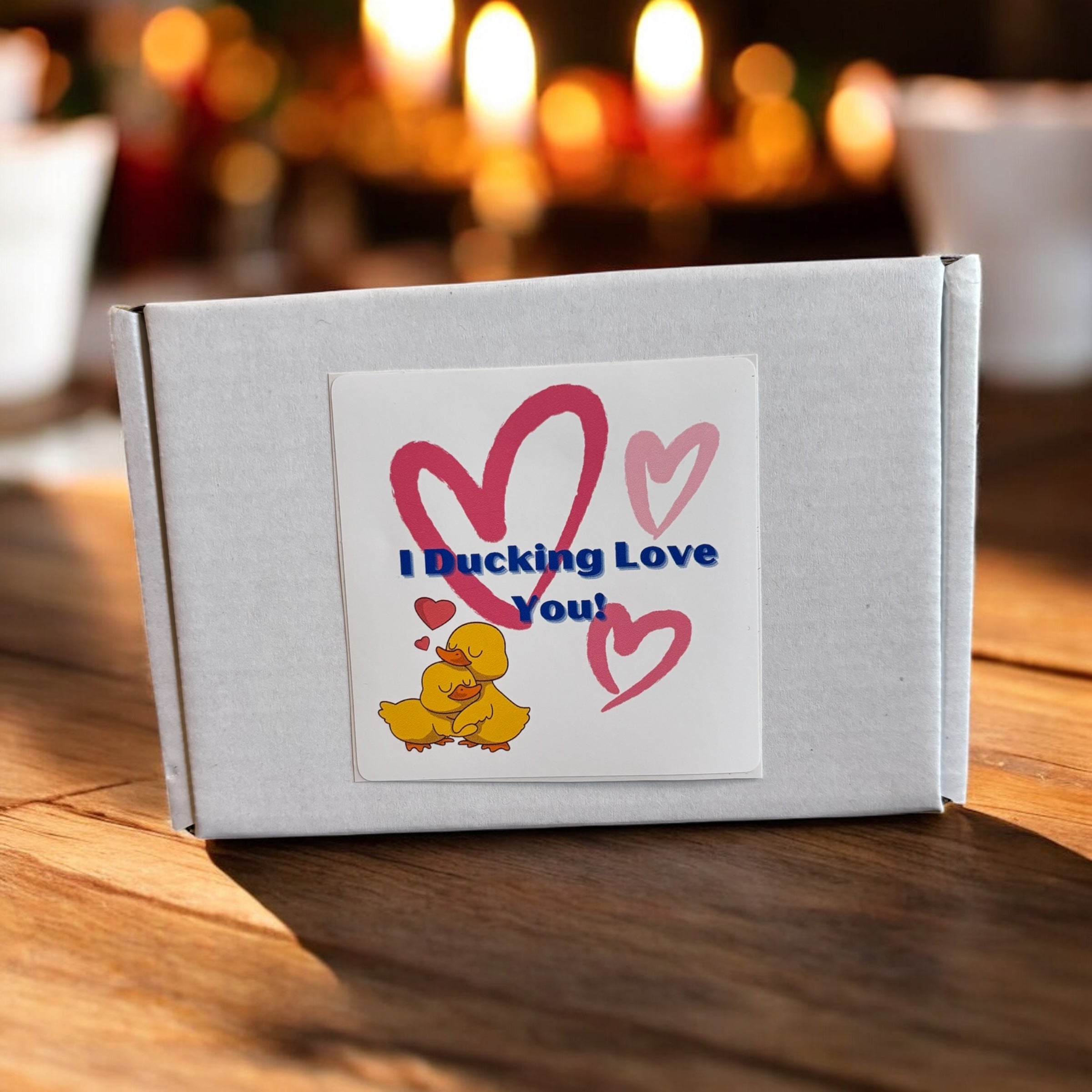 Celebrate special occasions with a quack-tastic surprise! I Ducking Love You Gift Box will have your friends grinning from ear to ear. Choose to nestle one Next Level Duck or up to three 2" ducks inside this festive gift box filled with crinkle paper to transform your gift into the ultimate Ducking Birthday that's sure to make a splash!