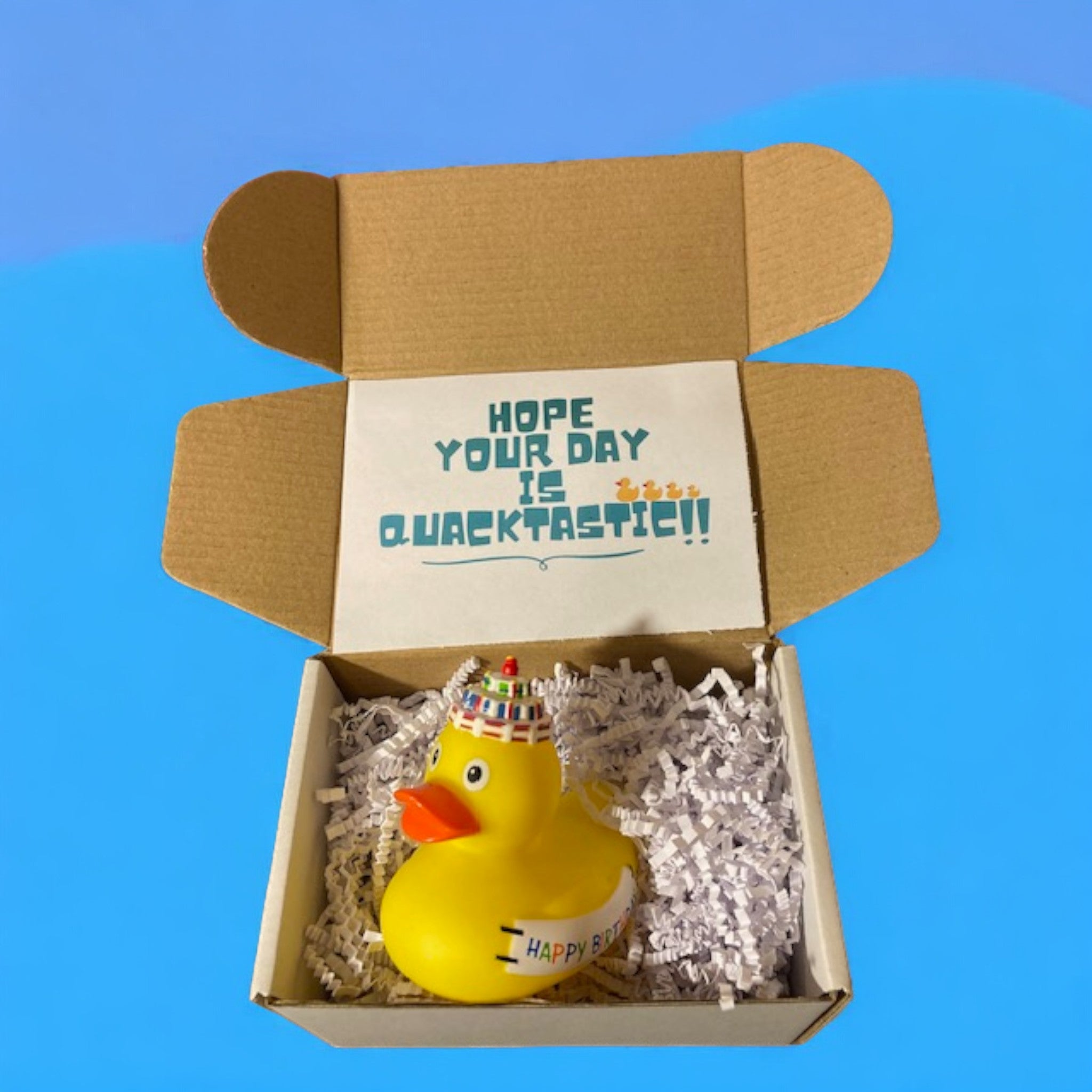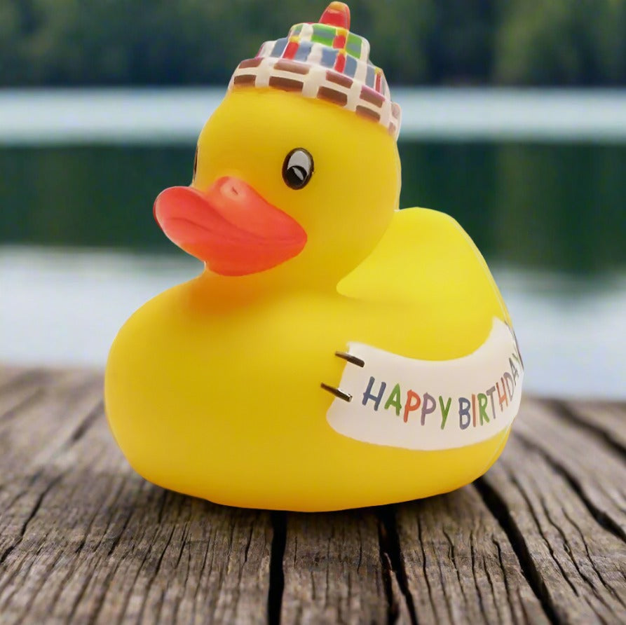 Make a splash on someone’s special day with our Happy Birthday Rubber Duck! This cheerful yellow duckie brings smiles and giggles to any birthday celebration. With its vibrant colors and playful design, it’s the perfect way to add a quack-tastic touch to the festivities.