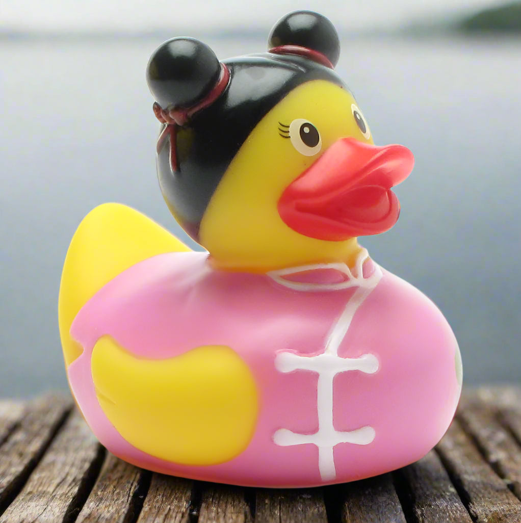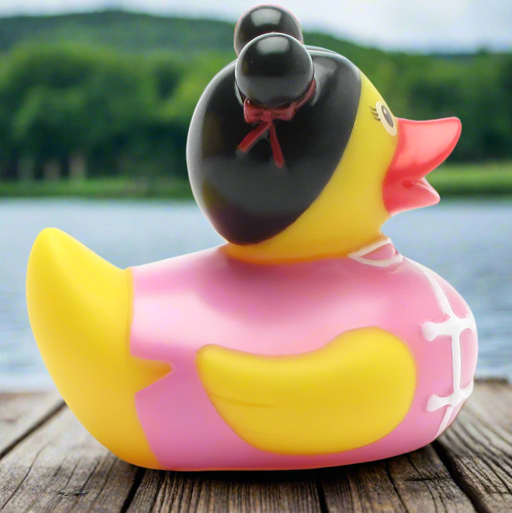 This Chinese Rubber Duck adds a pop of international charm to your days, sporting a classic outfit and fancy hairdo. Whether you're collecting ducks from across the globe or giving one as a gift, this spunky gal is bound to create a splash.