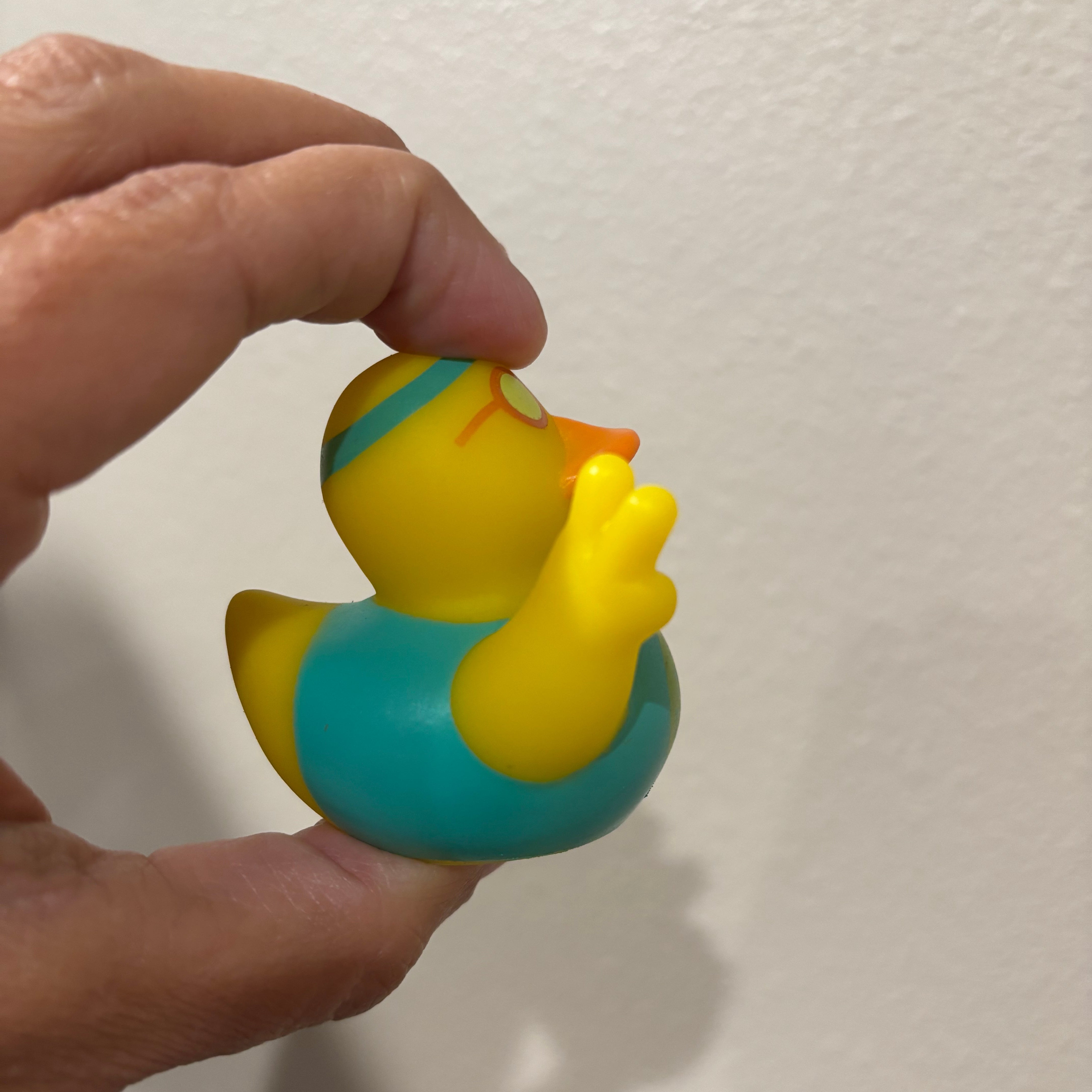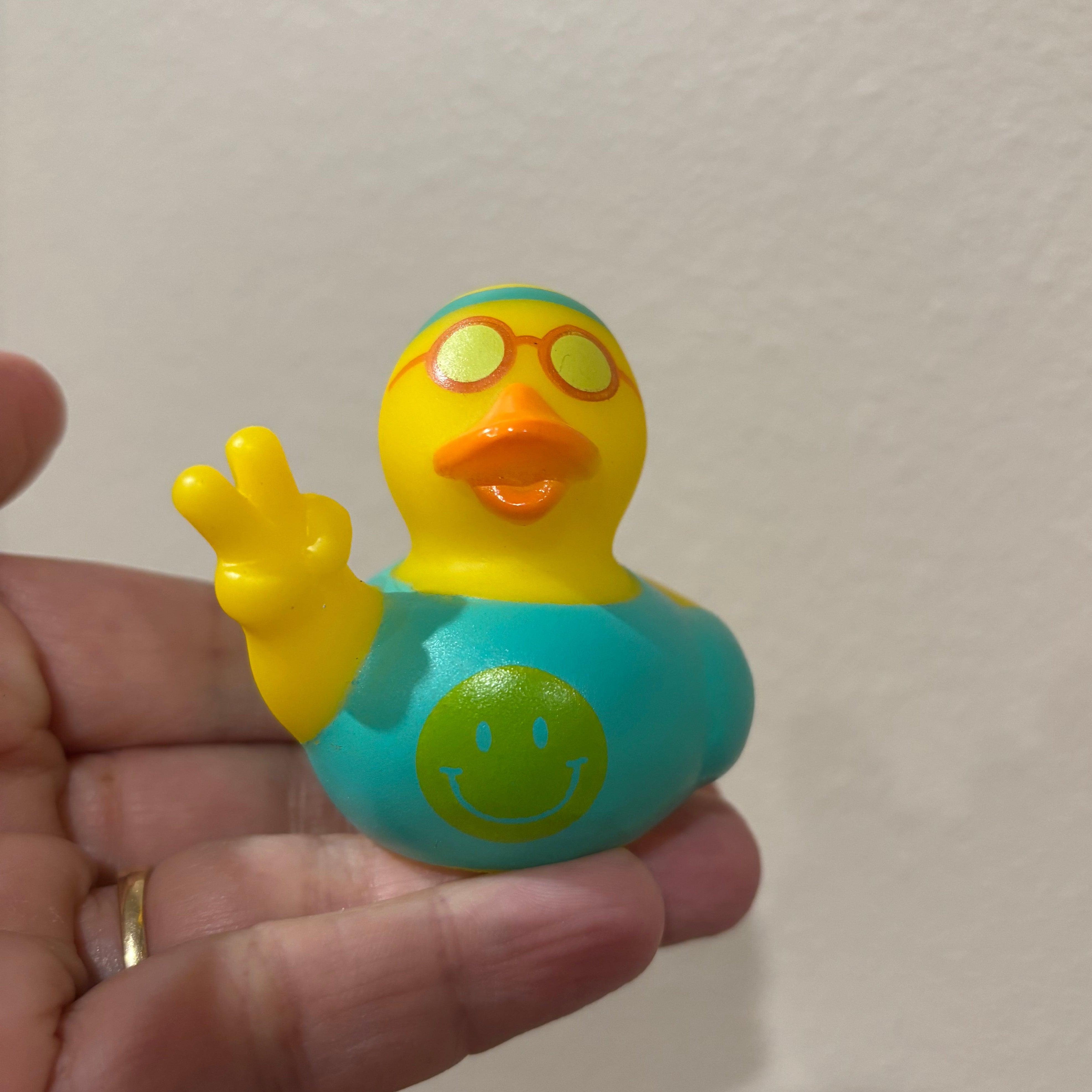 Hippie Green Rubber Duck proudly shows the peace sign!