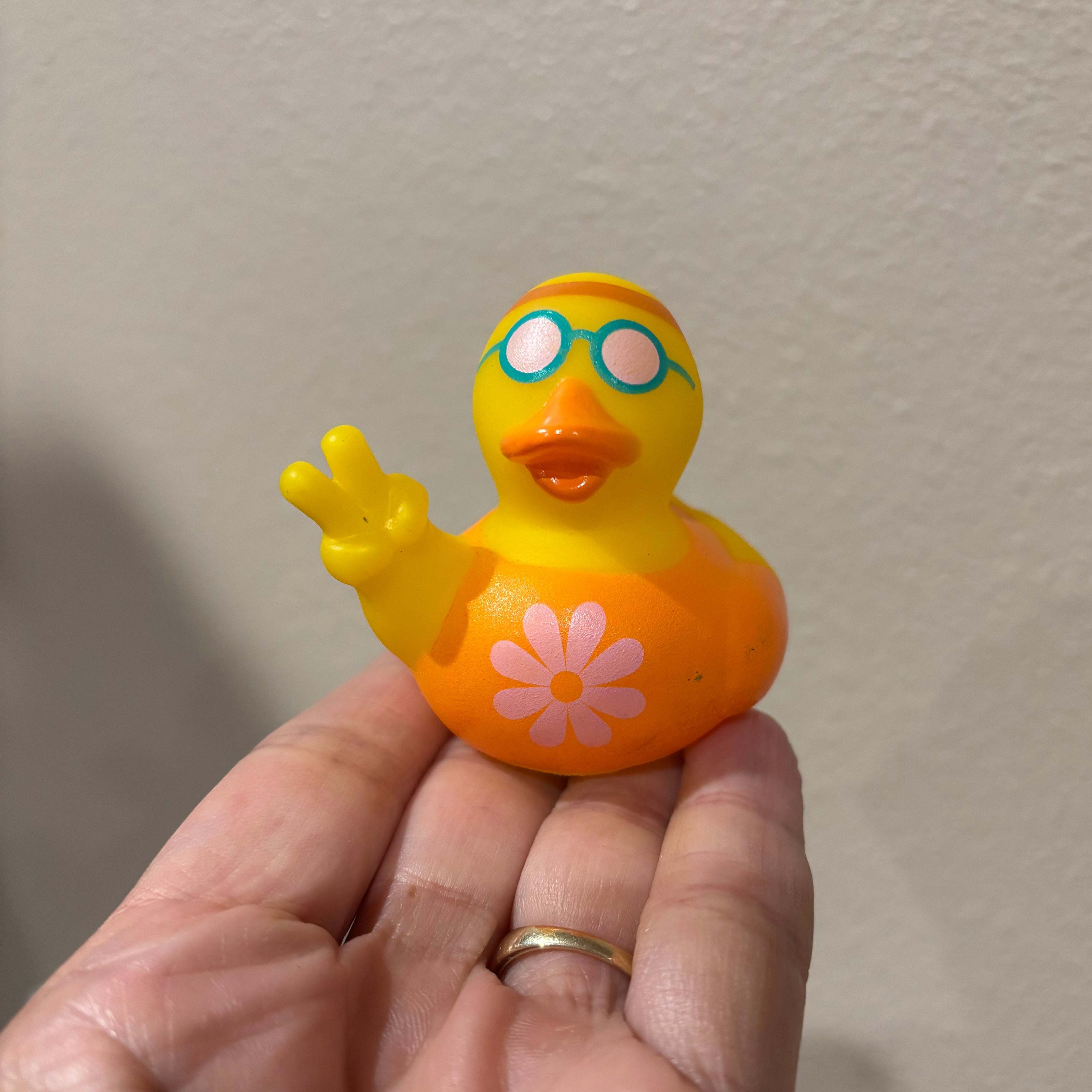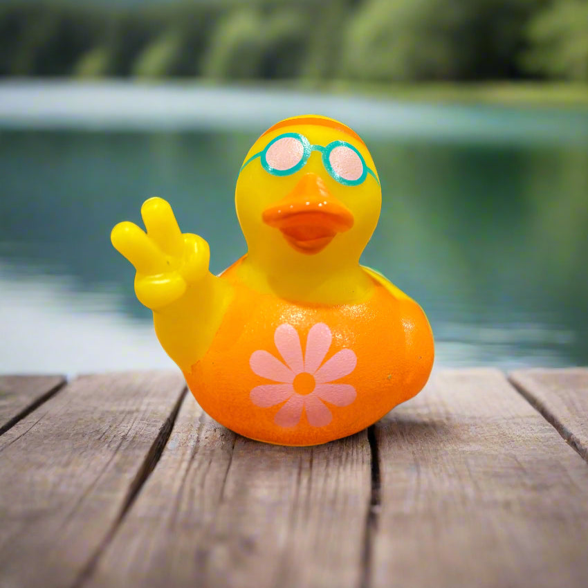Hippie Orange Rubber Duck loves the groovy flowers!