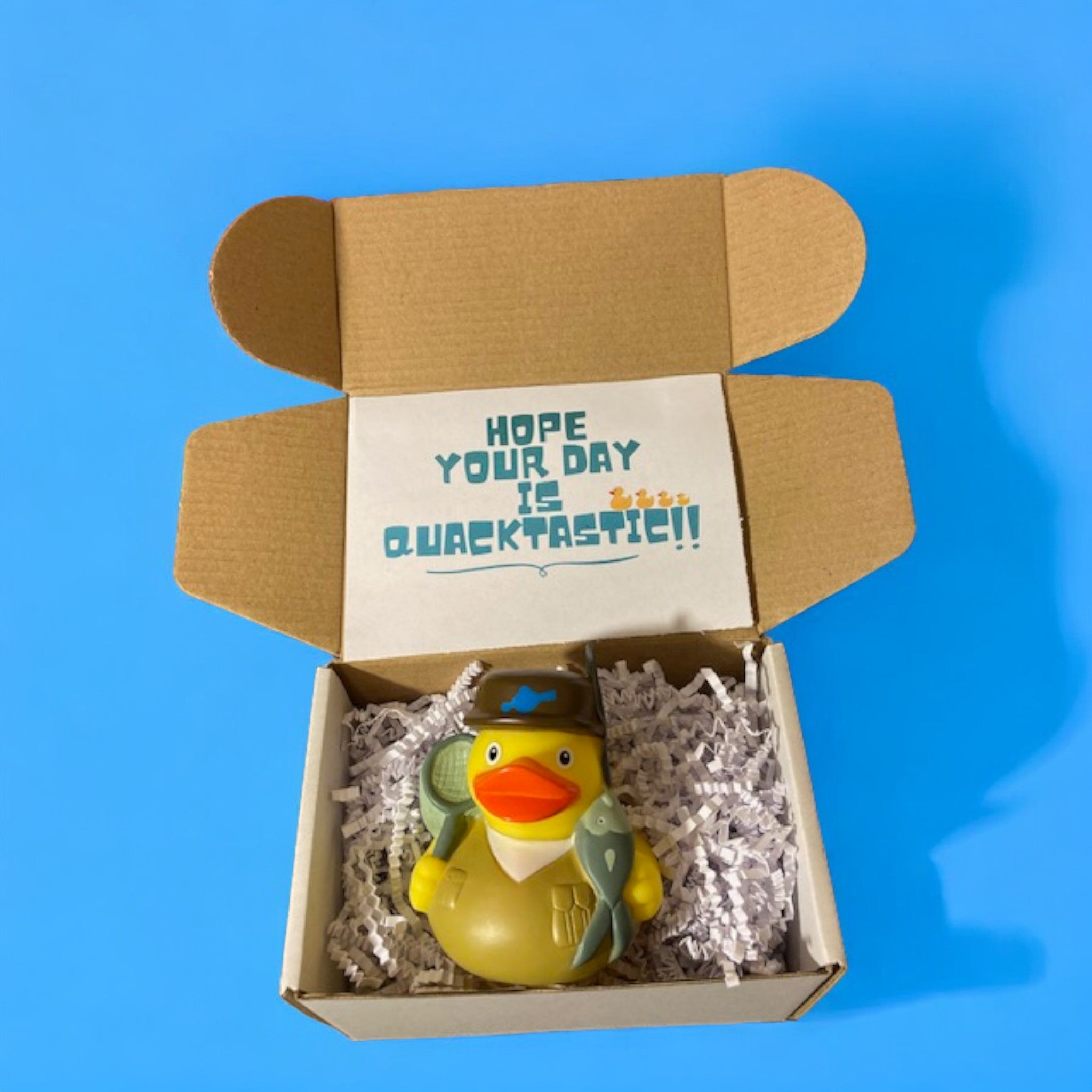 Our Angler Rubber Duck is a delightful companion for anglers and outdoor enthusiasts alike, promising to evoke memories of tranquil days by the water's edge.