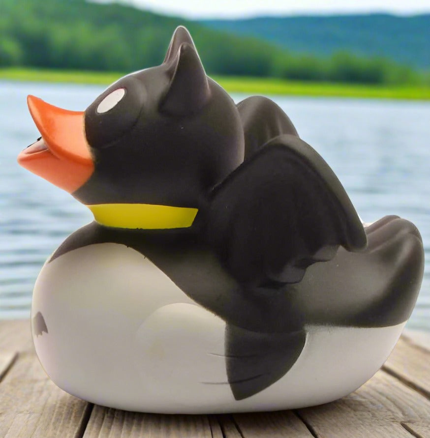 The Bat Rubber Duck is ready for crime fighting as soon as he sees the bat signal. Don't mess with the Dark Knight!