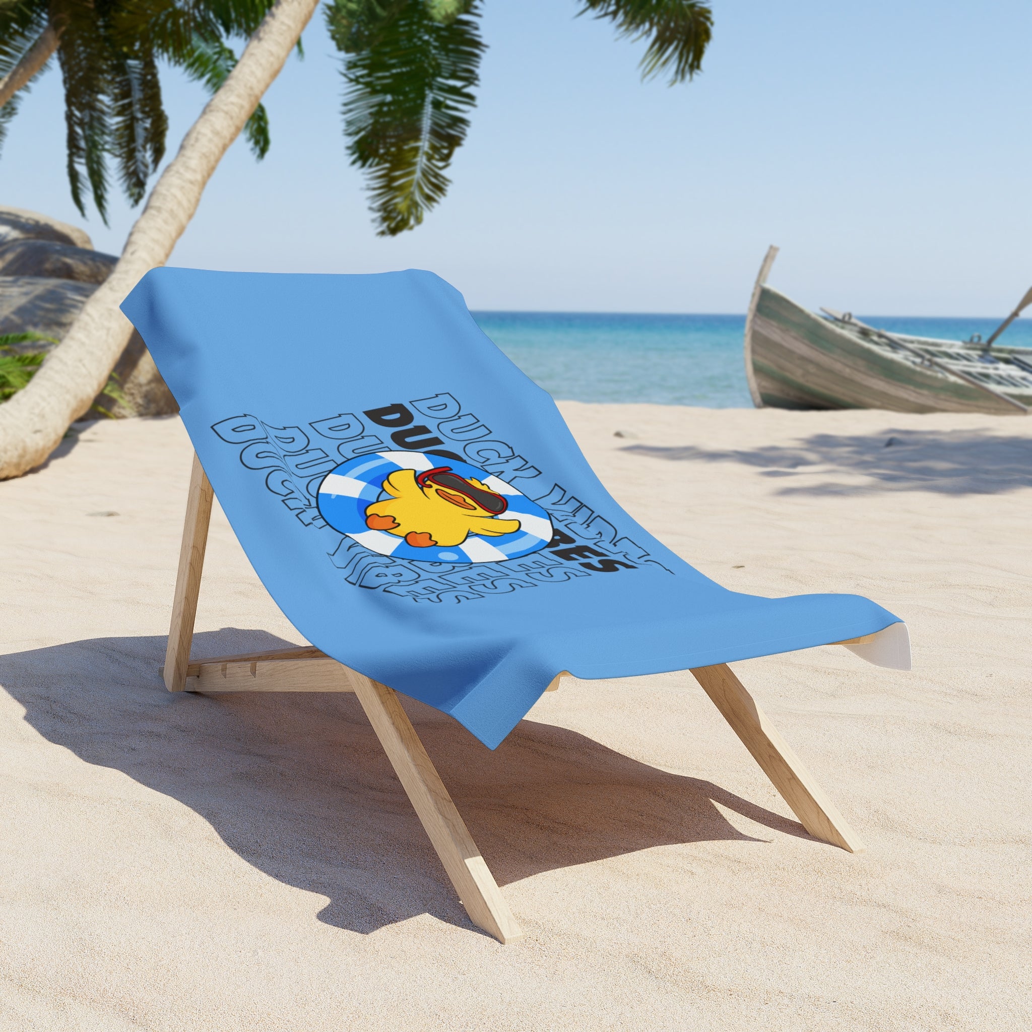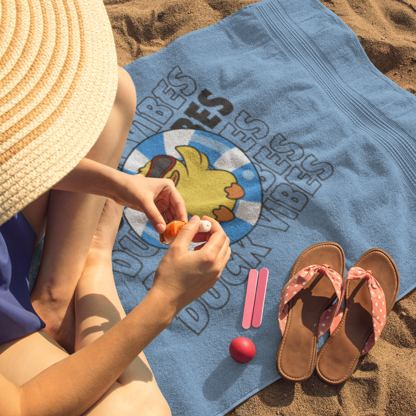 Beach days are always a delight – showing up with a luxuriously soft and customized beach towel will add a bit more sunshine to your day. Upgrade your beach experience today with our Duck Vibes Beach Towel and make every day a little brighter and more comfortable.