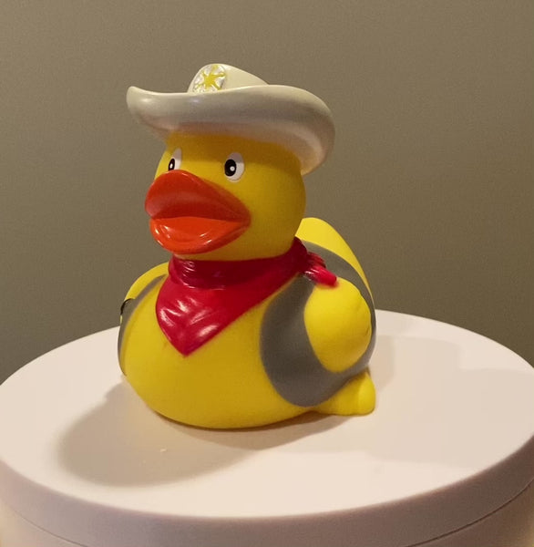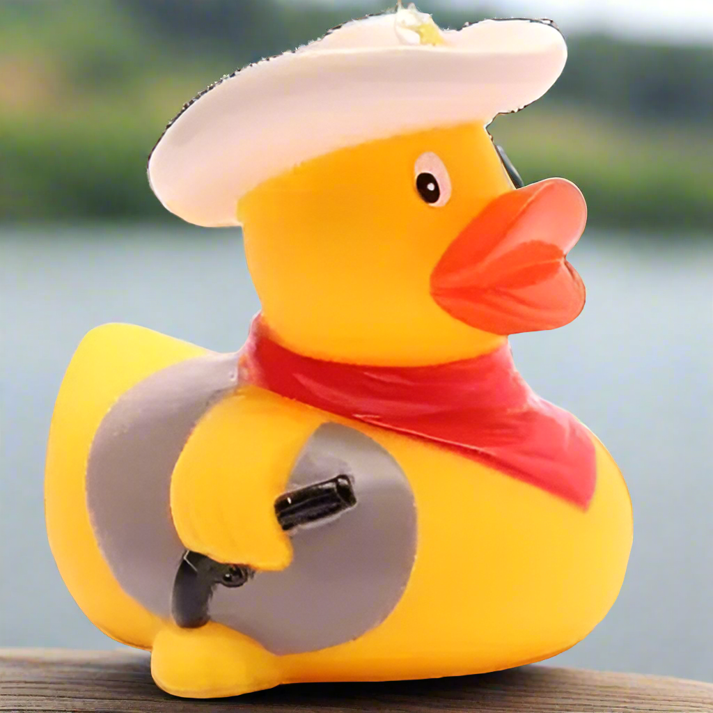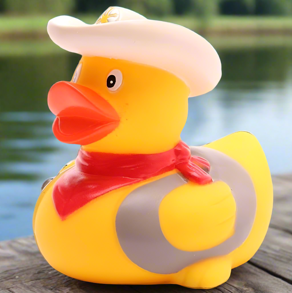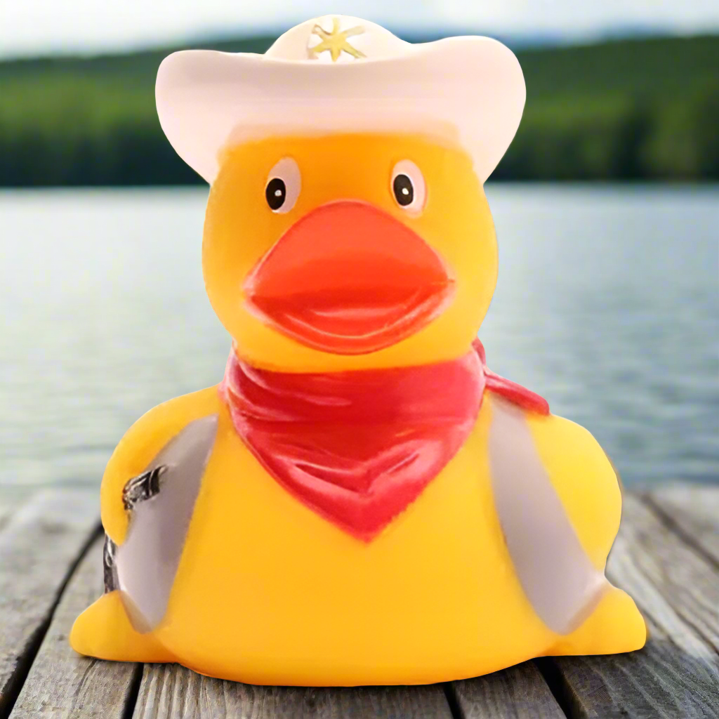 The Cowboy Rubber Duck will wrangle his way into your heart but pretends to be the roughest, toughest duck in the West! Saddle up, partner, 'cause this ducky is a rootin' tootin' quackin' cowboy ready to rustle up some ducking fun.