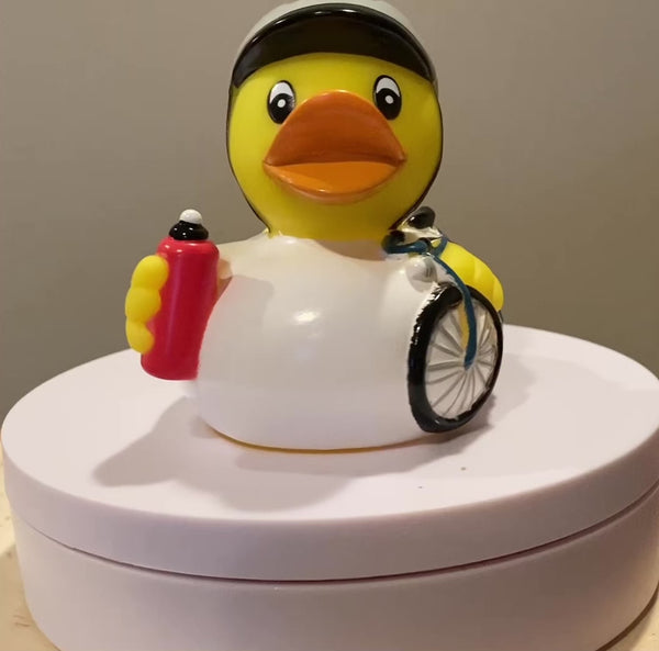 The Cyclist Rubber Duck always leads the pack with a yellow jersey!