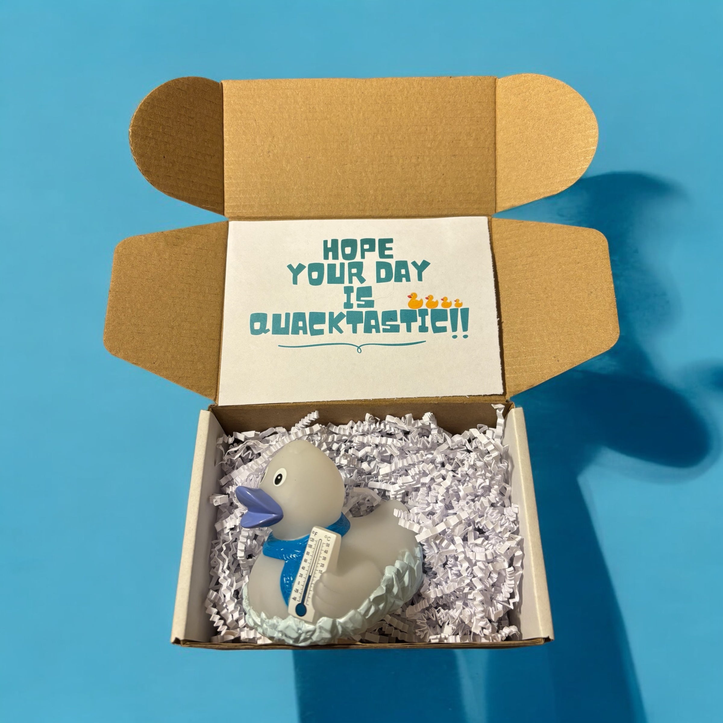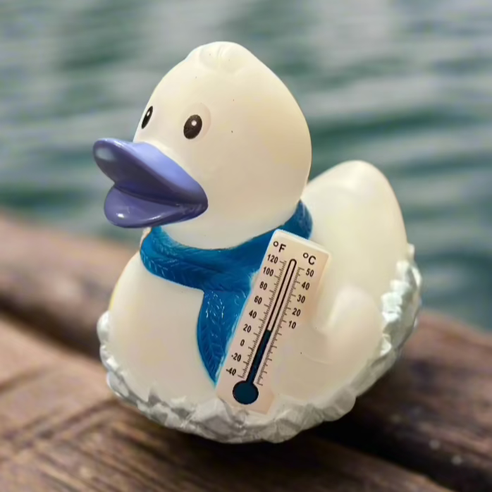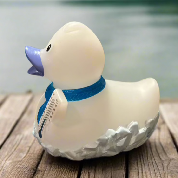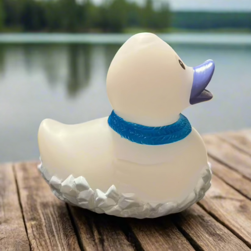 The Frosty Rubber Duck is always freezing, as noted by his thermometer! This gives a new meaning to being so cold that your lips turn blue! He's the perfect gift for your quacky friends who love winter!