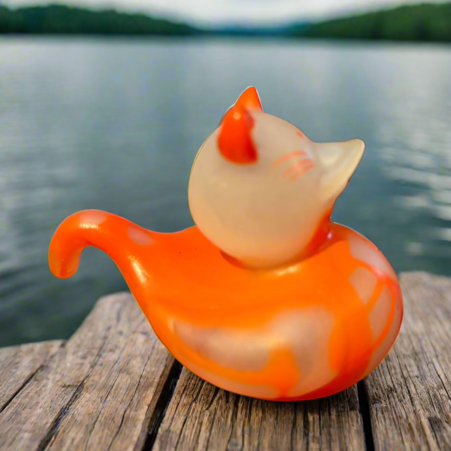 Glow in the Dark Skeleton Orange Cat Rubber Duck has the purrrrrrfect amount of light in the dark!