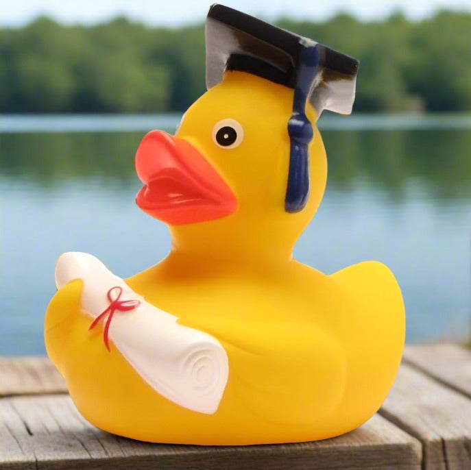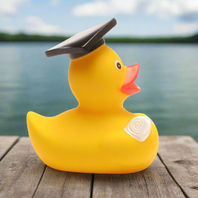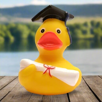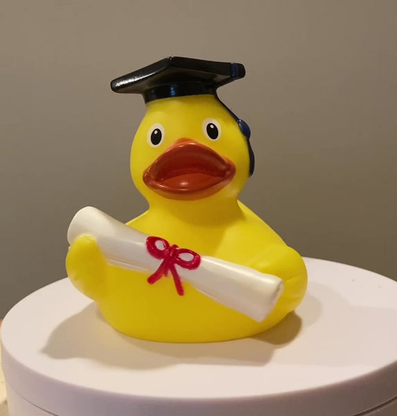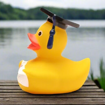 Our Graduate Rubber Duck isn't your average duckling; this is a quackademic prodigy, ready to quack its way to the top of the class! Decked out in a mini cap and gown, our Graduate Rubber Duck is ready to toss its rubbery mortarboard into the air and celebrate years of hard work, dedication, and, let's be honest, plenty of bubble-filled study breaks!