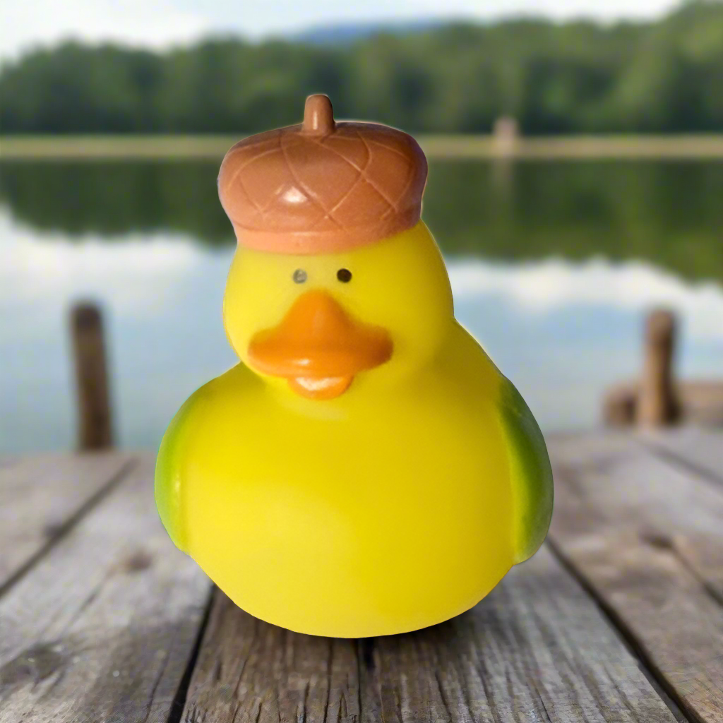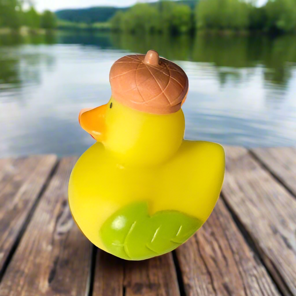 The Fall leaf Autumn Green Rubber Duck hasn't started changing color yet!