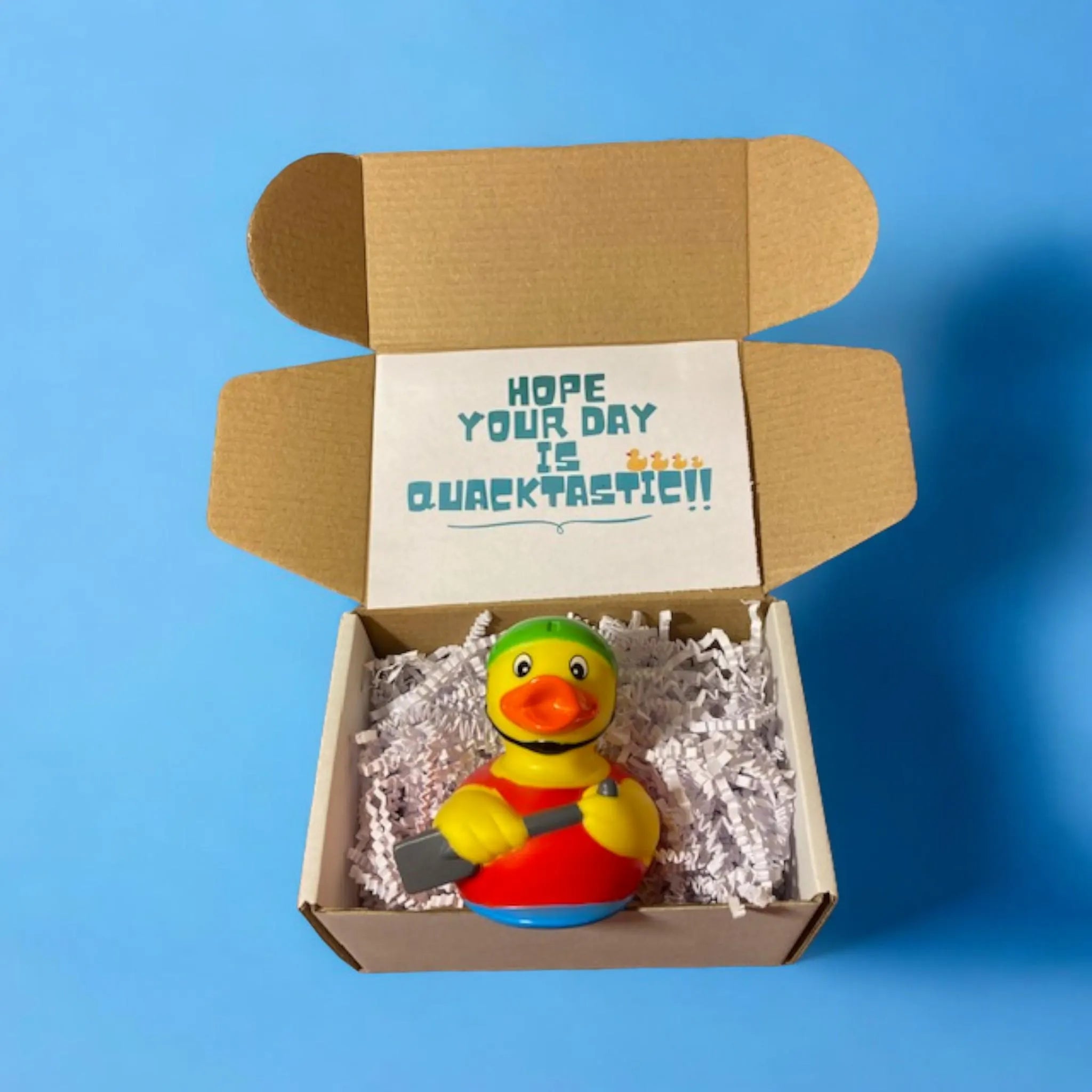The Kayak Rubber Duck loves to tackle all the white water waves in your life, whether on a shelf at home or on your car dashboard. Imagine cruising in your ride with this daring duck riding shotgun, navigating your journey with unflappable charm. Secure your very own Kayak Rubber Duck now and be the envy of every off-road warrior. This duck is your new adventure buddy, guaranteed to make you smile with every glance.