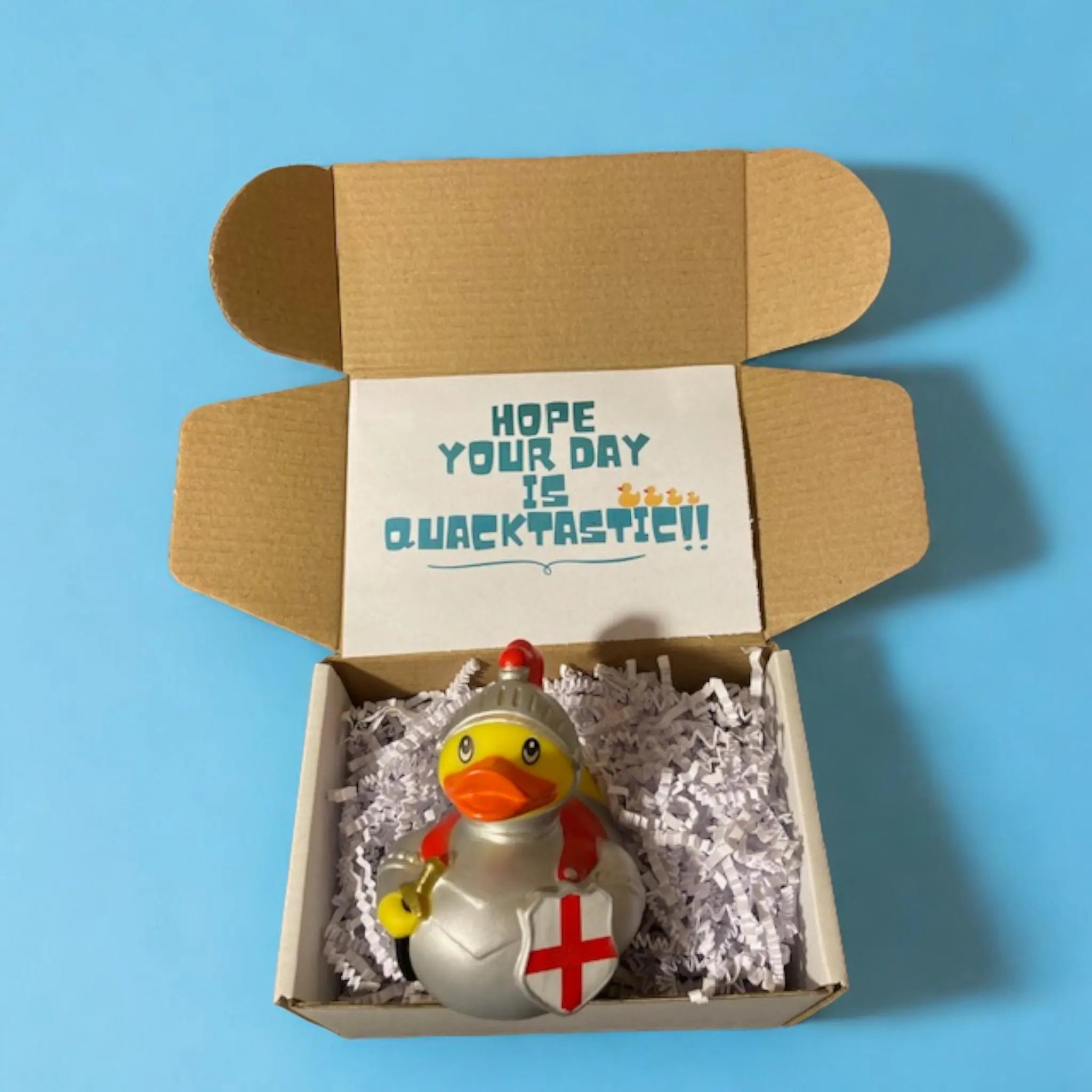 Introducing the Knight Rubber Duck, the gallant rubber duck that’s here to protect the castle and bring a smile to your friend's face! Clad in shining armor and ready for adventure, this brave little duck is the perfect blend of humor and charm. Whether it's defending the office or standing guard on a desk, Knight Duck is the quirky and delightful gift that will make your friend’s day. Gift them a chuckle and a faithful companion in one – because every castle needs a noble knight, especially one that quacks!