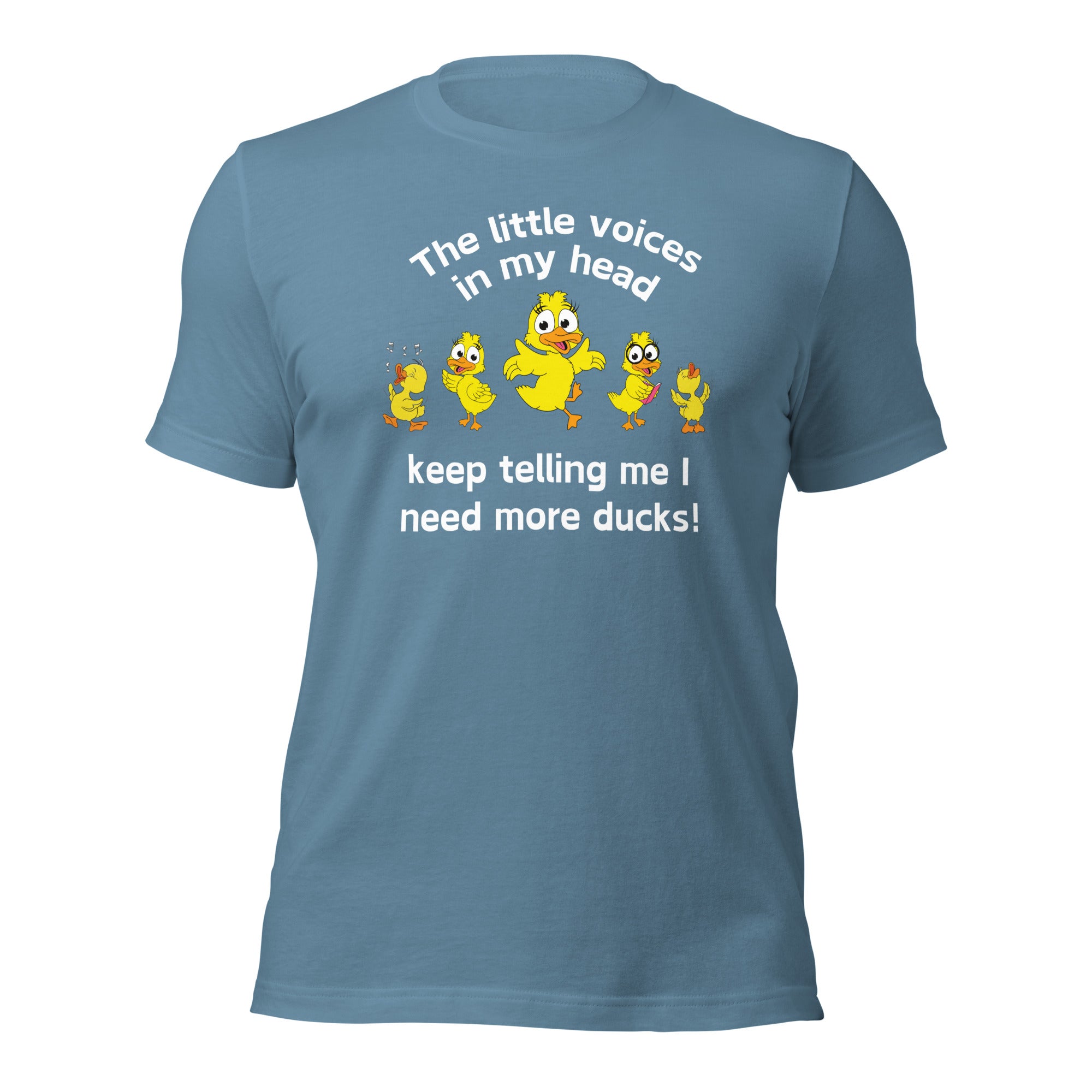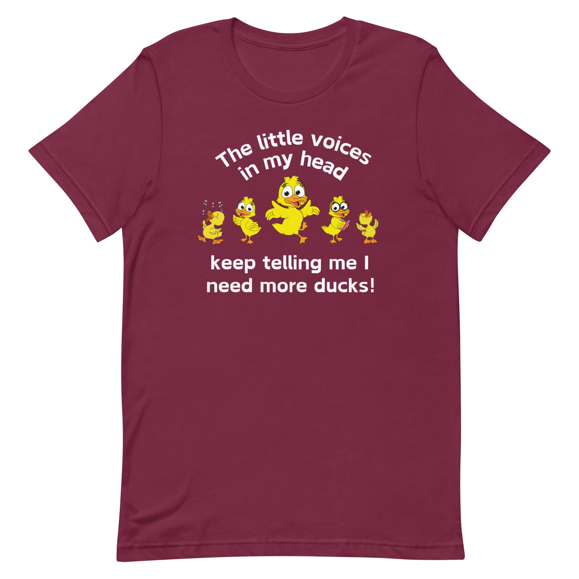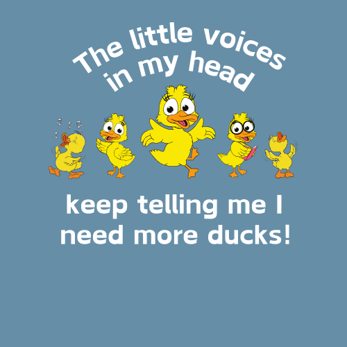 Our "Little Voices in My Head Keep Telling Me I Need More Ducks" T-Shirt is the perfect attire for those who know that a life without ducks is just plain quackers!