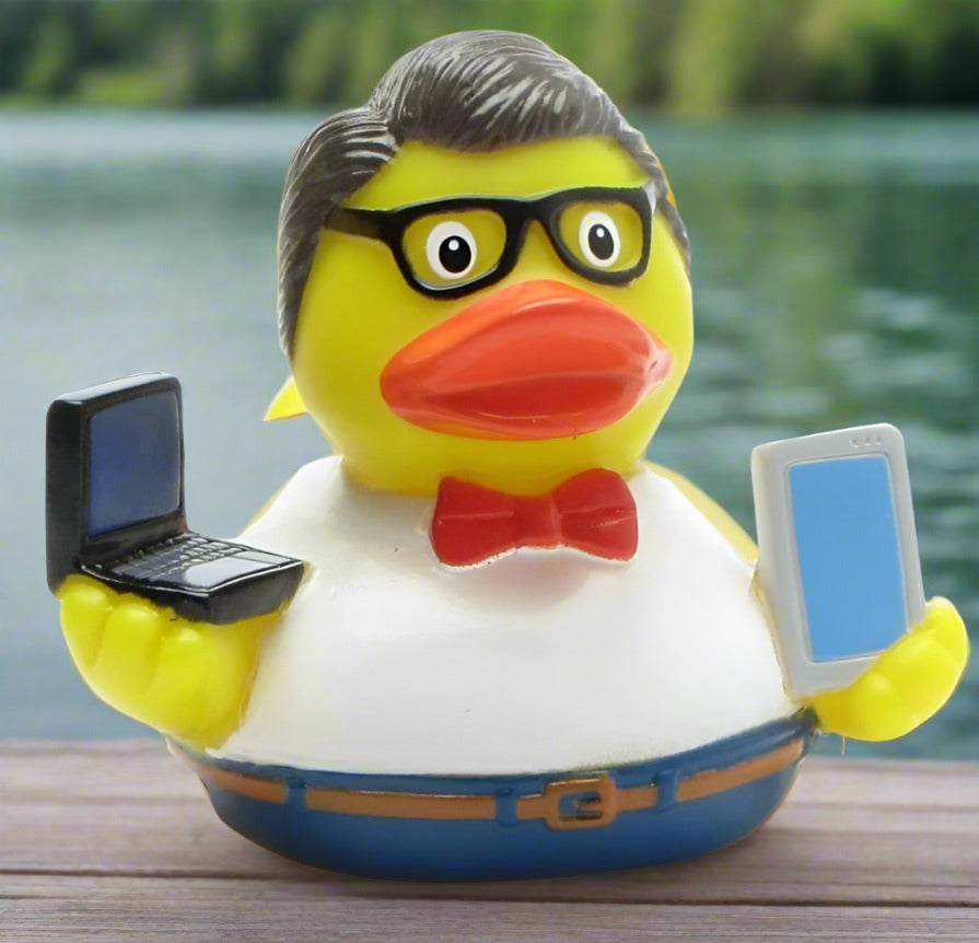 Introducing the Nerd Rubber Duck - but don't let his geeky exterior fool you. Whether you're pondering the physics of bubbles or the chemistry of soap, this duck's got the knowledge to drop some serious random wisdom.