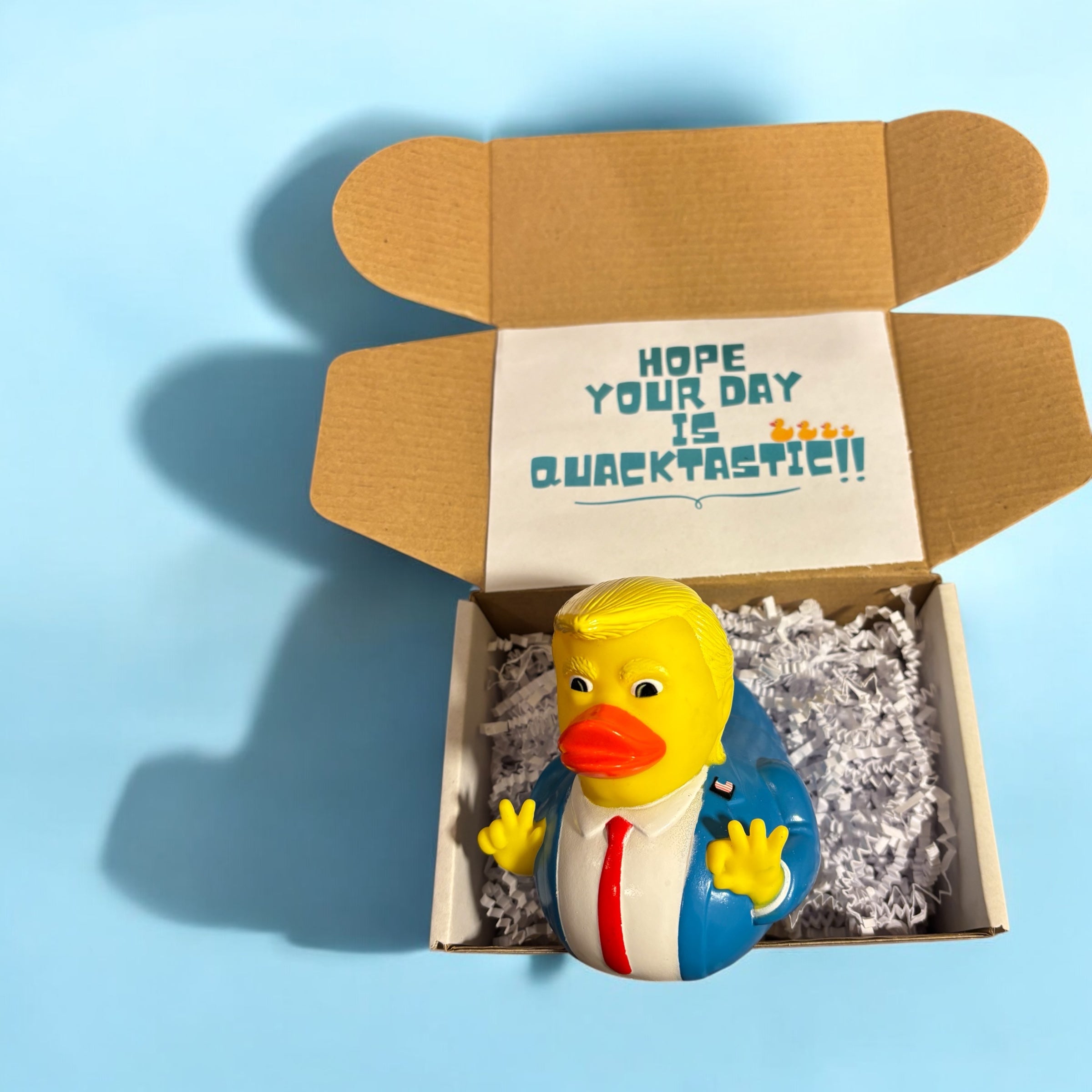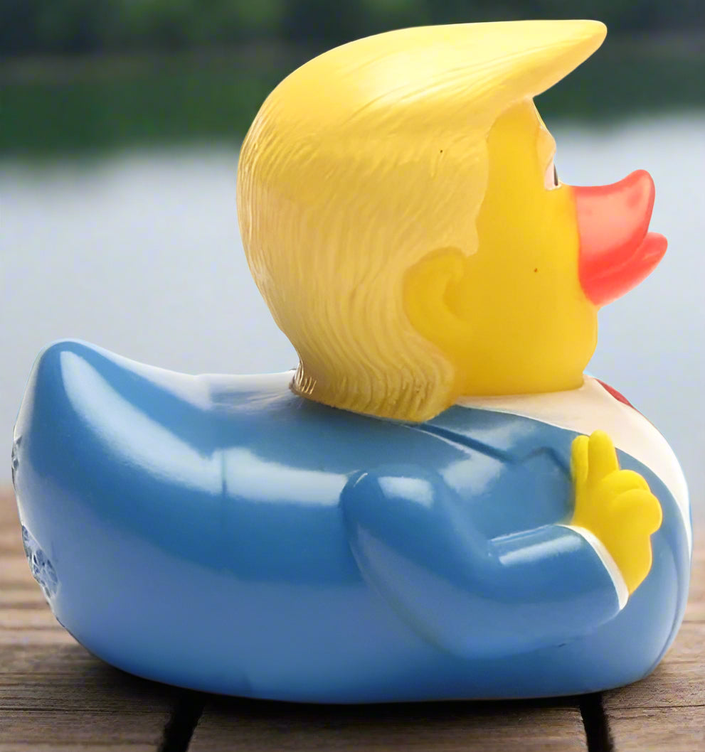 Make a splash with the President Donald Rubber Duck! This unique duck features a design inspired by a certain political figure. Perfect for both fans and critics, this rubber duck captures the essence of American politics and makes for a great gift. Express your political views in a fun and playful way with the President Donald Rubber Duck.
