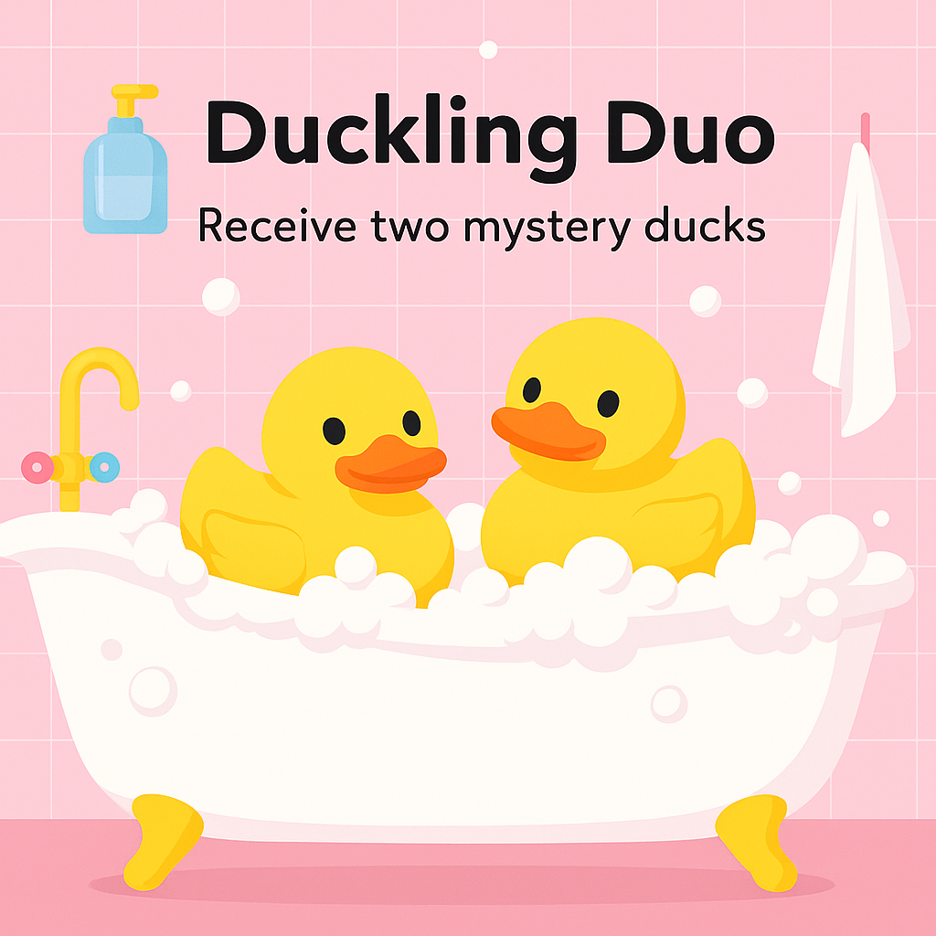 The Duckling Duo is your monthly ticket to sending (or receiving) twice the smiles. Each package includes two unique rubber ducks and a fun surprise, all packed with care and delivered straight to their (or your!) doorstep.