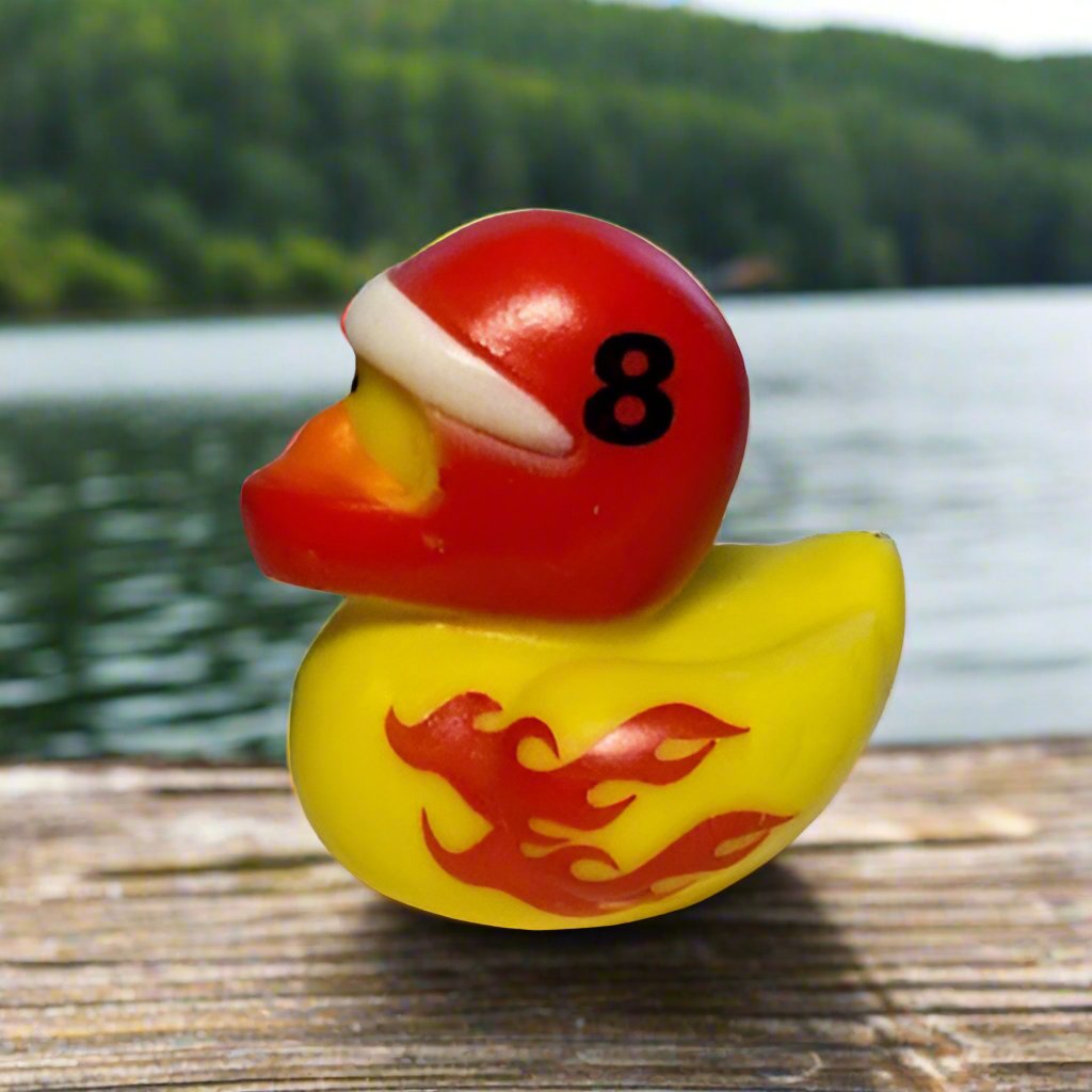 Racer Rubber Duck can jump over 13 Quackers sitting in a row!