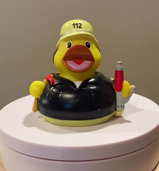 Introducing our courageous Firefighter Rubber Duck, the fearless hero ready to save the day! This is the perfect gift to honor the unwavering dedication of firefighters everywhere.