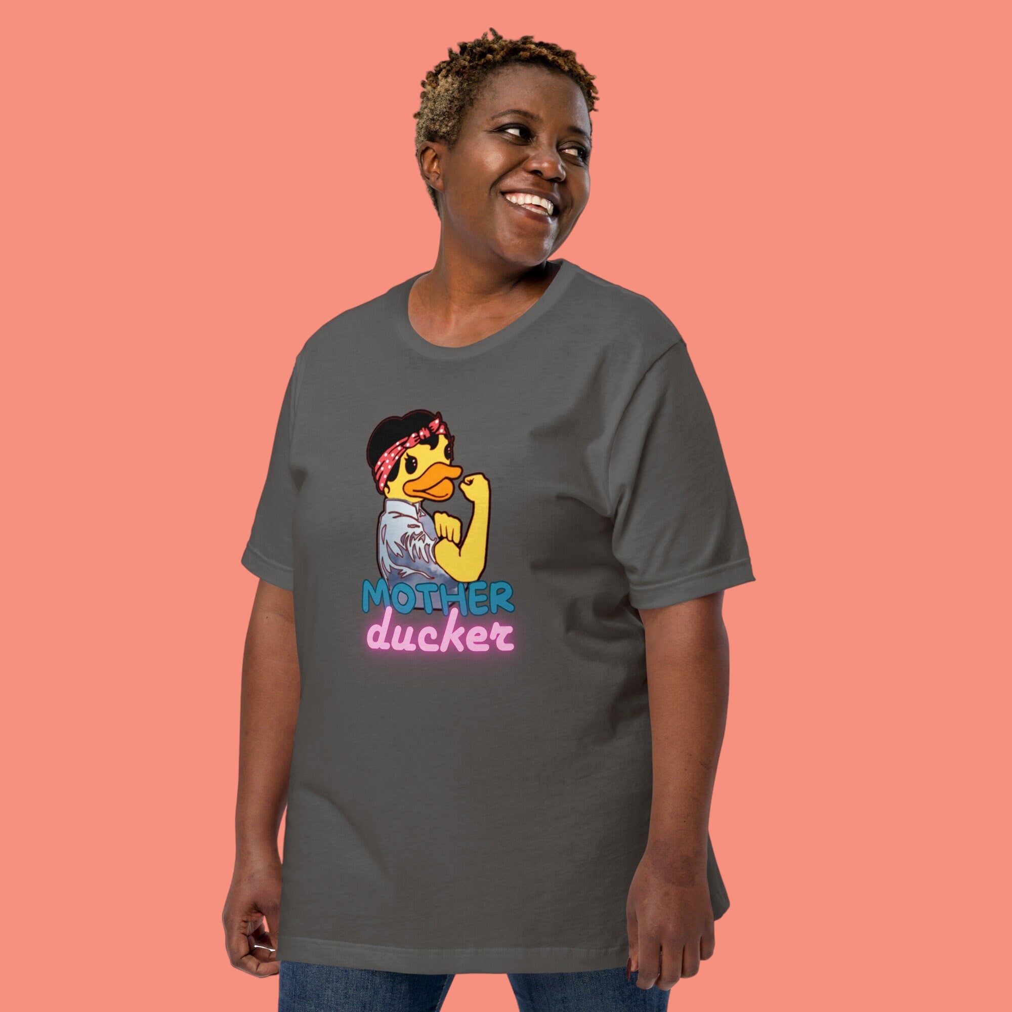 We love our "Mother Ducker" Tee – the ultimate quack-up for moms who rule the roost with feathers and flair! Whether you're herding ducklings or wrangling kids, this shirt declares your status as the undisputed matriarch of the flock. With its pun-tastic play on words, it's sure to elicit chuckles and quizzical looks wherever you go. So go ahead, wear it proudly and let the world know that when it comes to parenting, you're one cluck above the rest!