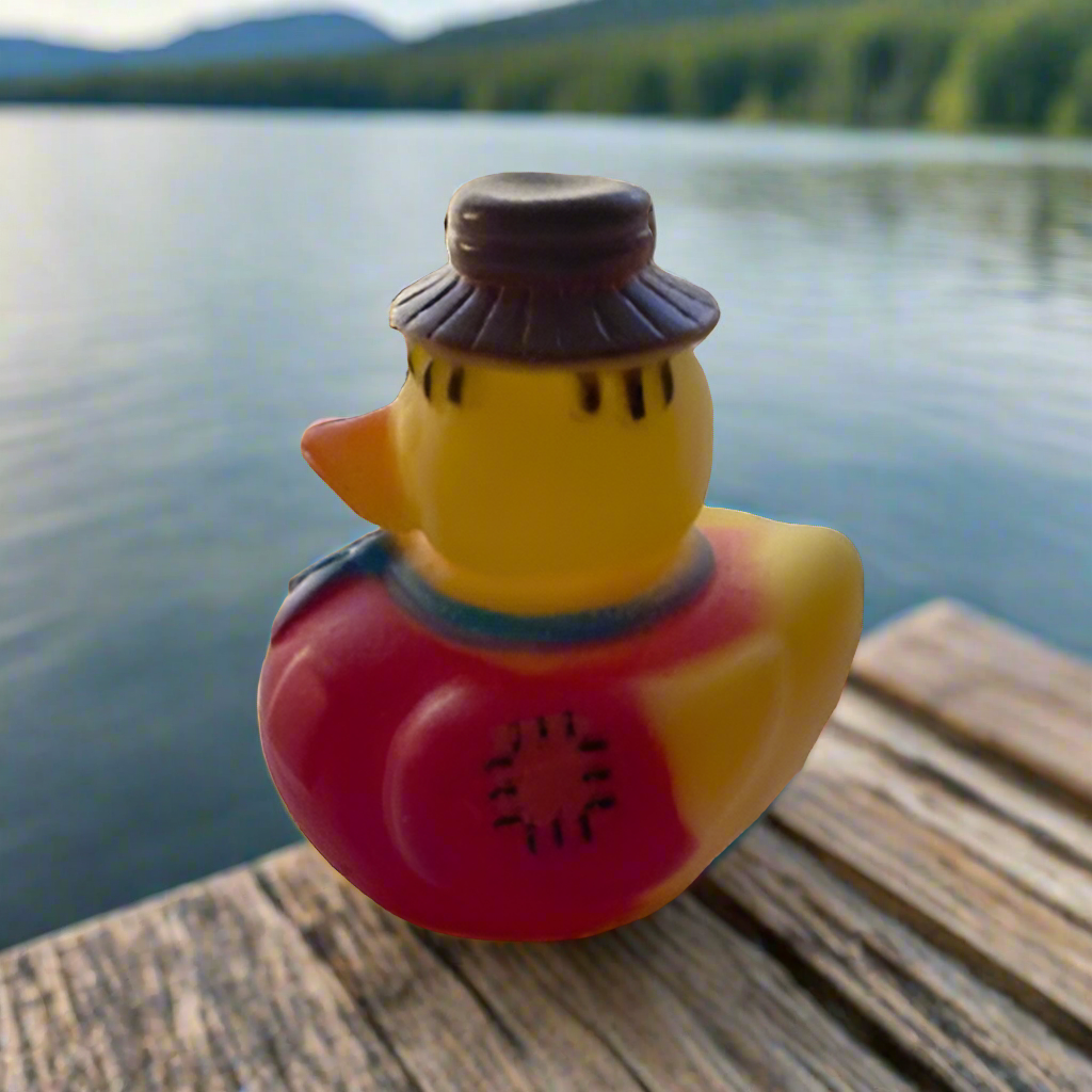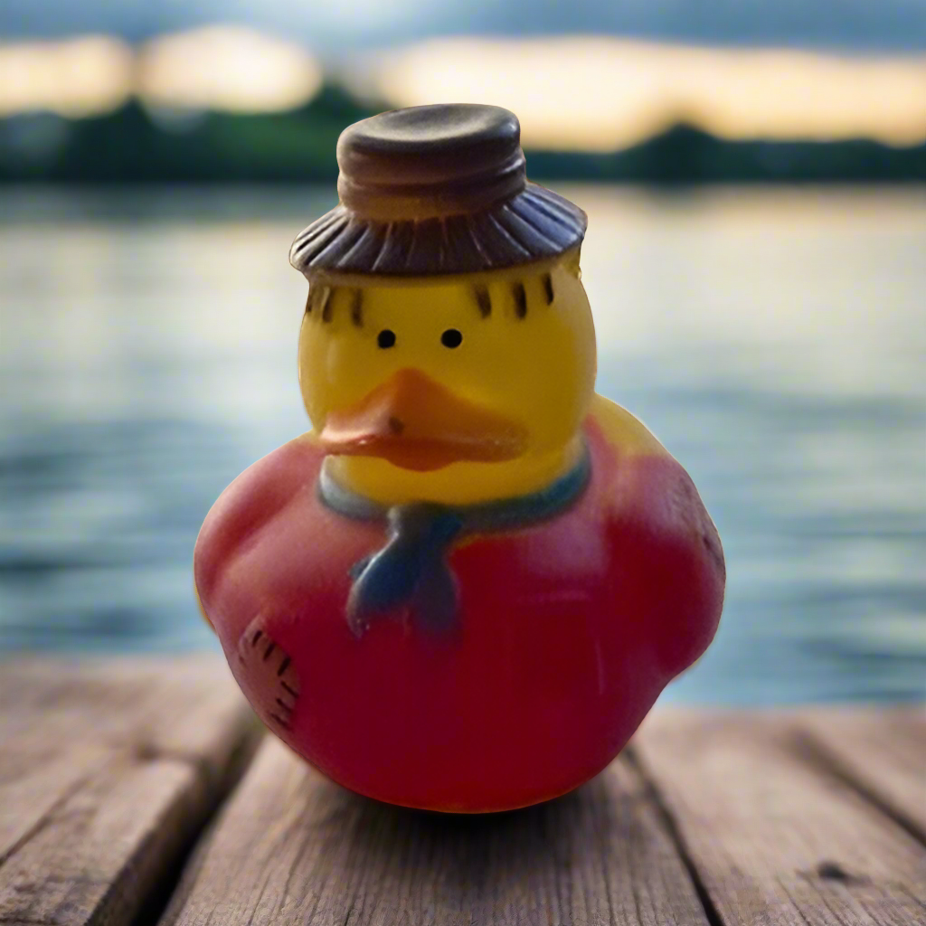 It's easy to sneak up on the Scarecrow Farm Red Rubber Duck!