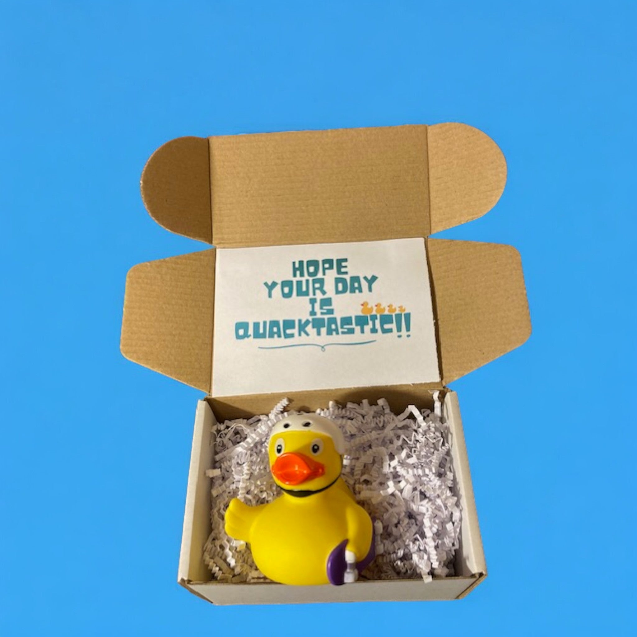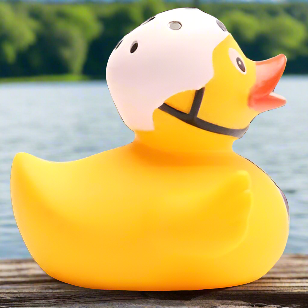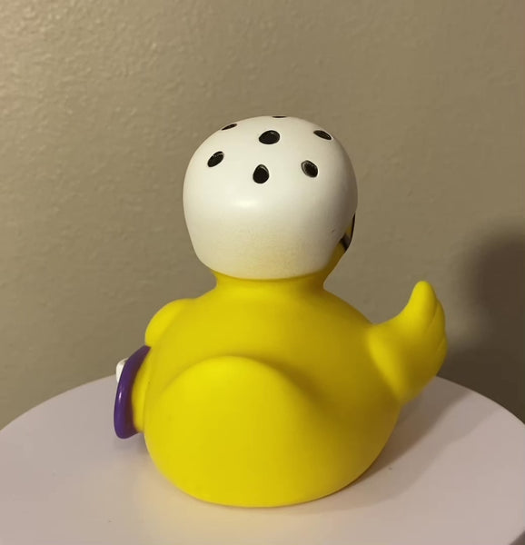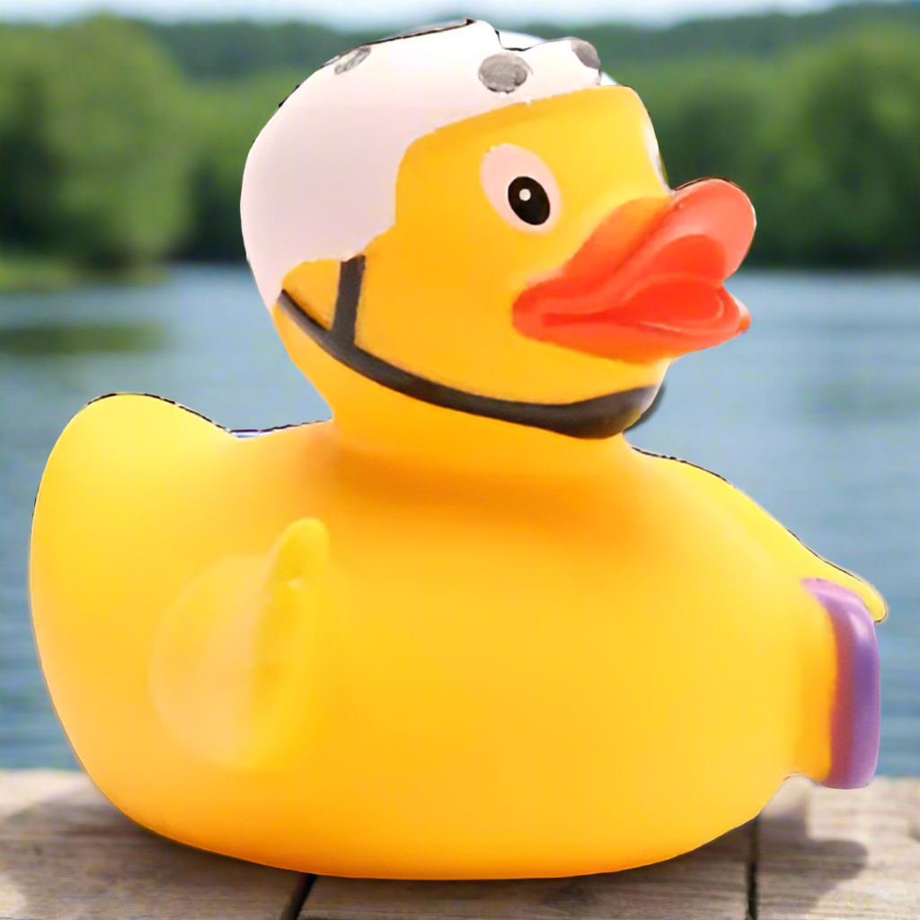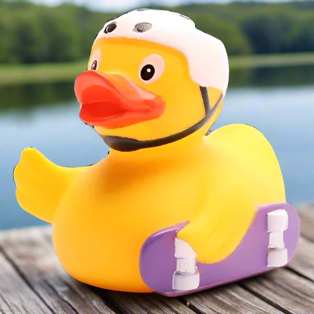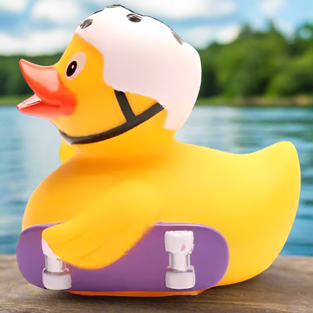 The Skateboard Rubber Duck is always at the park doing tricks on the rails!