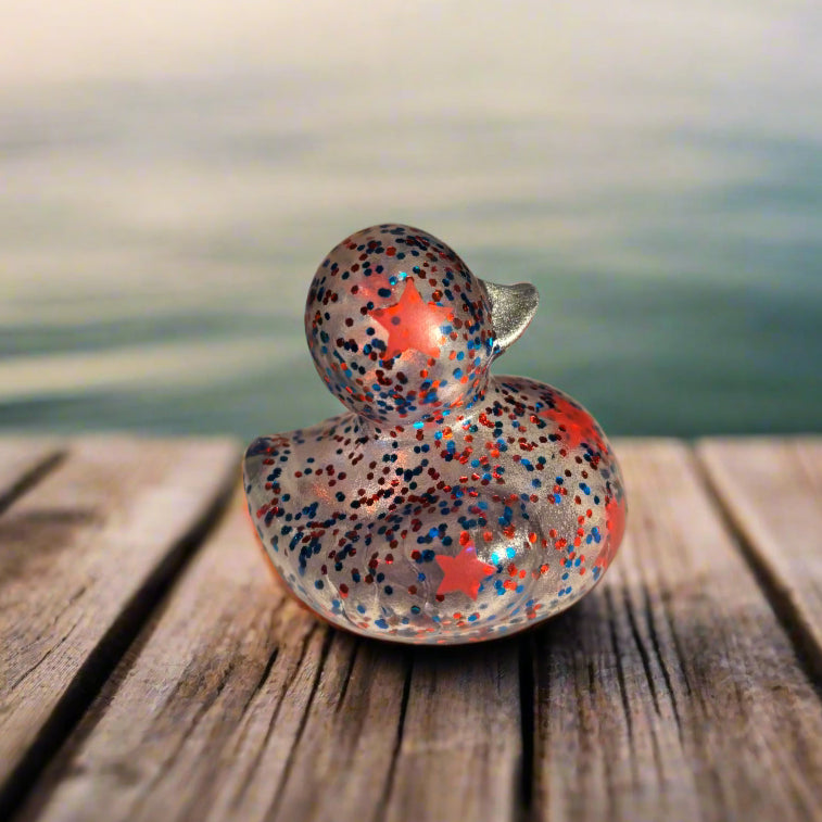 Star Spangled Glitter Rubber Duck sparkles like confetti!